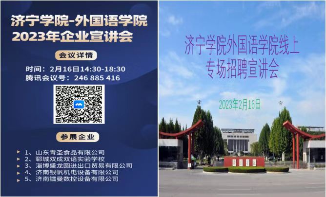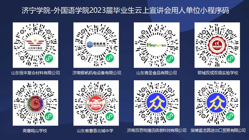 本次宣讲会邀请山东青圣食品公司、郓城双成双语实验学校、淄博盛龙圆进出口贸易有限公司等五家单位在线宣讲,其余十家单位发布了招聘简章。各单位招聘负责人分别介绍了公司或单位的概况、职业发展方向、岗位需求以及薪资待遇等方面的内容,并着重对公司内部的晋升体系、内部转岗通道、新员工培训体系等方面做了详细介绍。本次专场宣讲重点推介初高中英语教师、外贸专员、外贸跟单等岗位,提供就业岗位160余个。