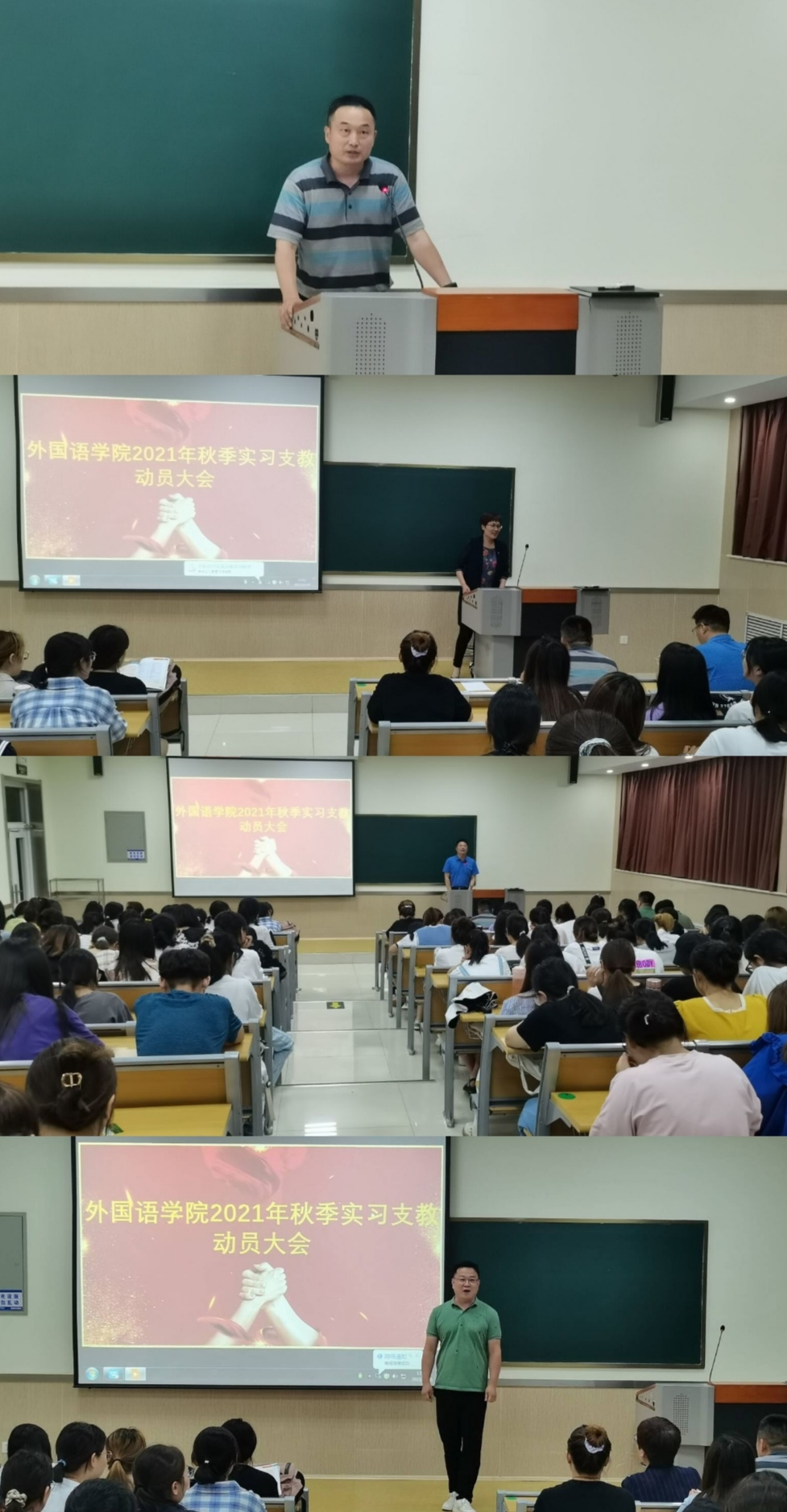 为更好地贯彻山东省师范生实习支教工作精神,落实好我院2021年秋季实习支教工作,6月30日下午,安博站官网登录入口在3号楼C101召开2021年秋季实习支教动员大会,该院党委书记陆波、院长杨楠、副院长张殿海、辅导员及即将参加秋季实习支教的2019级英语教育专业的153名学生参加。会议由该院党委副书记许言强主持。