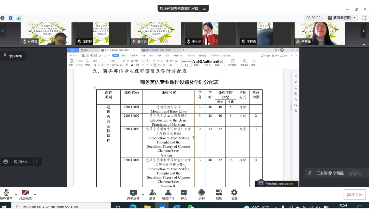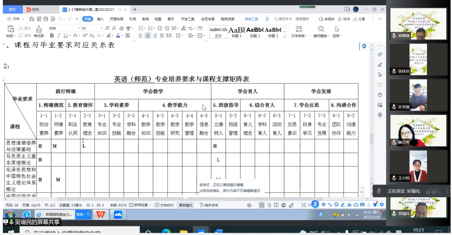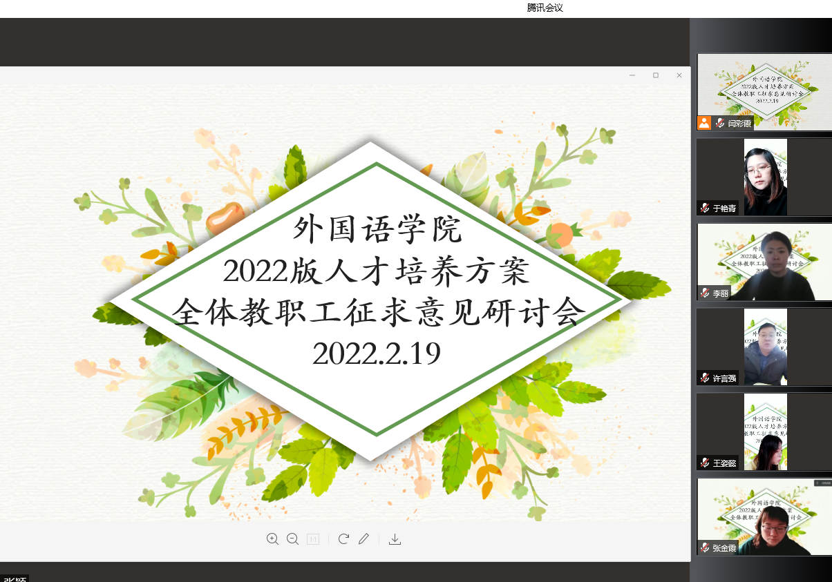 2月19日上午8点30分到12点,安博站官网登录入口召开2022版人才培养方案全体教职工征求意见研讨会。“雨水”时节,全体教职工相聚腾讯会议,共话育人新方案。研讨会由杨楠院长主持。