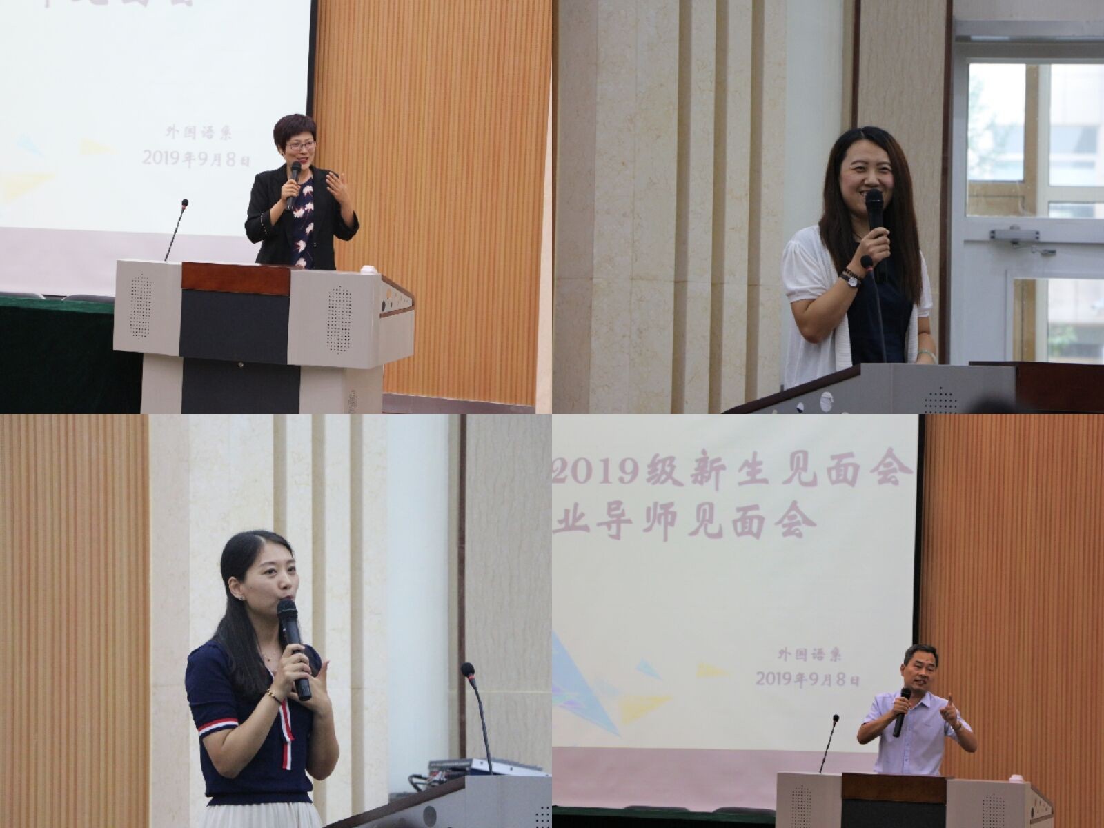 金秋九月,丹桂飘香,在秋的浓浓韵味里,外国语系迎来了343位来自全国各地的2019级新生。为使新同学进一步了解外国语系,尽快融入新的集体和环境,2019年9月8日晚4:30-6:30,外国语系2019级新生见面会暨学业导师见面会在3号楼报告厅举行。外国语系党总支书记陈彦华、系主任杨楠、系副主任张颖出席了见面会。大会由系副主任张颖主持,同时参会的还有2019级学业导师、辅导员以及全体大一新生。