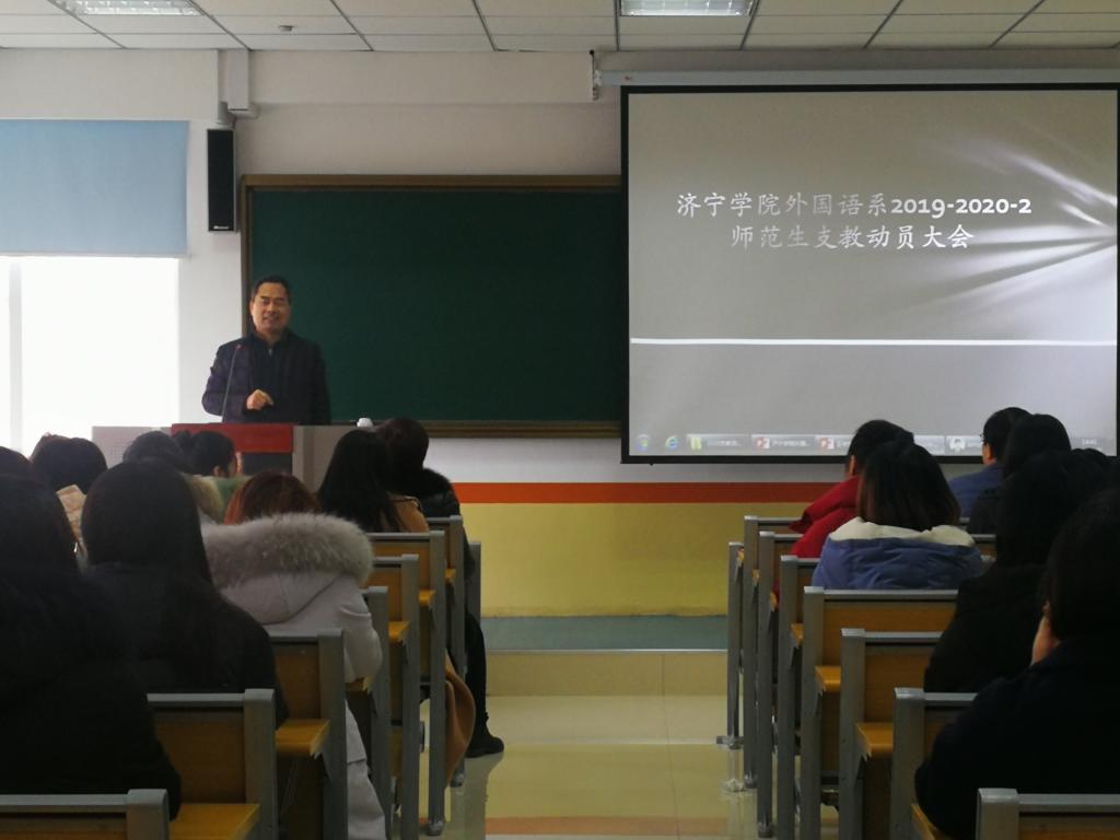 为更好地贯彻山东省师范生实习支教工作精神,落实我校实习支教工作方案,2020年1月3日,外国语系在3号教学楼B310举办了2020年春季实习支教动员会。