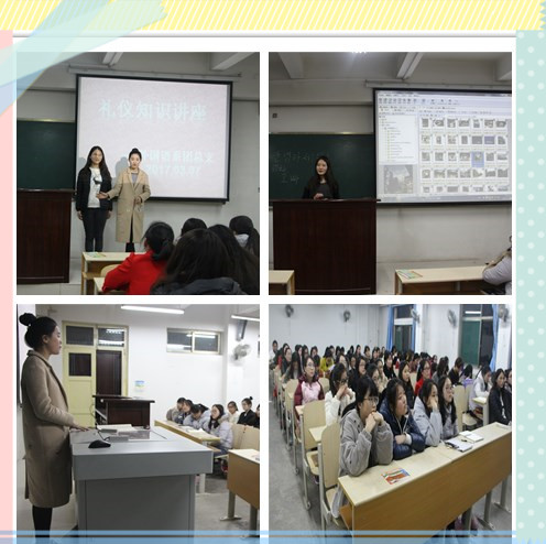为提高同学们的礼仪文化修养, 2017年3月7日晚7:00,由外国语系团总支主办的礼仪知识交流会于本系A201多媒体教室举行,2016级全体女生参加了此次活动。