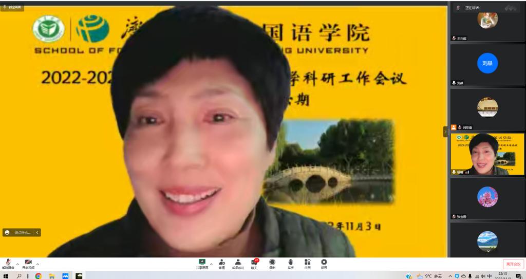 张颖副院长通报了学校教学例会的会议精神,并结合工作实际,安排了教学课题申报、师范认证准备等工作。张殿海副院长结合学生实习实训和教师挂职锻炼等工作做了重点安排。刘晶主要介绍了高水平学科建设论证和国外语言学学术年会筹备情况。作为山东省国外语言学学会2022年承办方,学院希望借助学术年会的东风,鼓励教师多参与学术会议,发出属于外院人的学术声音。