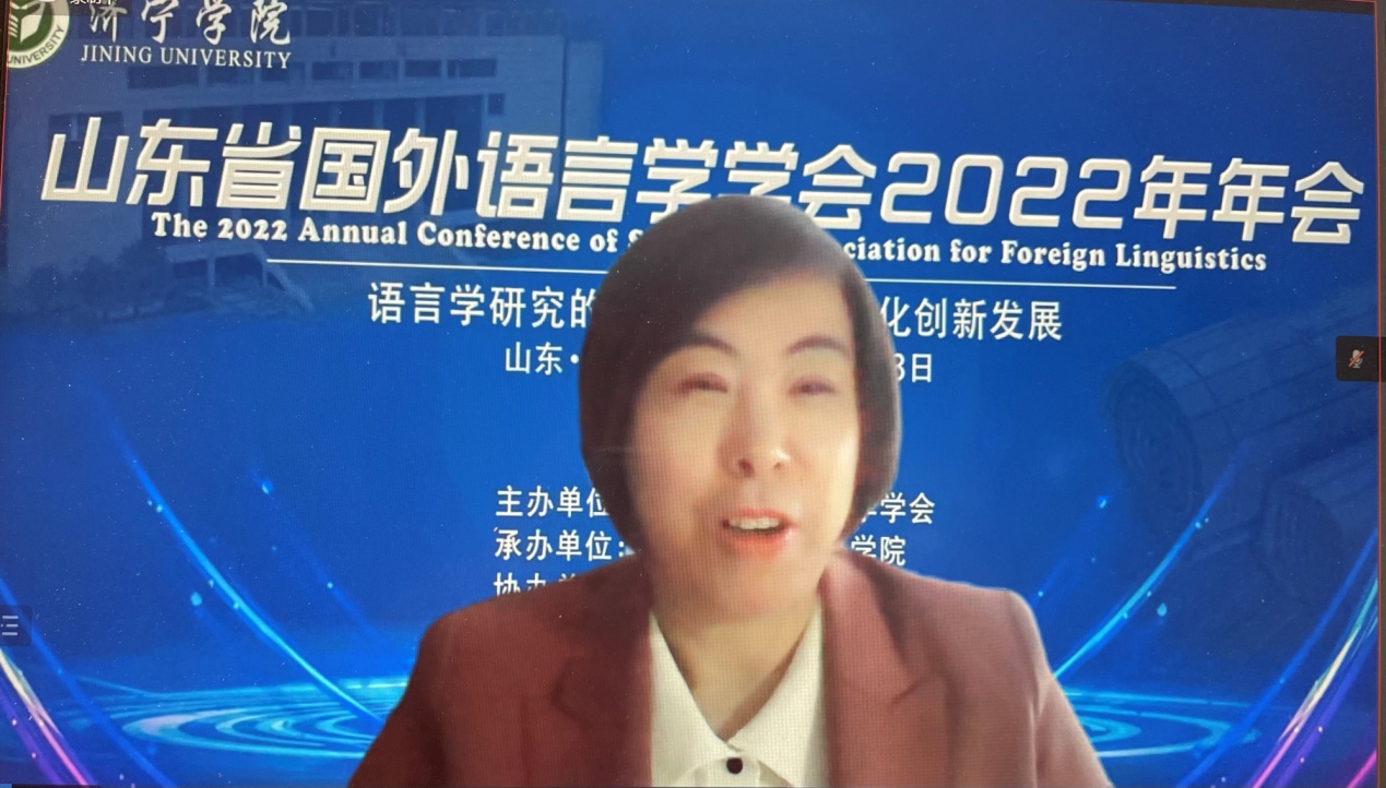 济宁学院党委书记杨天梅代表济宁学院致辞。杨书记首先简要介绍了学校根植孔孟之乡、沐浴圣地儒风、建设高质量应用型本科高校的办学目标、“学生为本、教师为先、服务地方”的办学理念、外语学科的办学特色、学科建设、人才培养和教学成果。然后对省内外专家学者的与会表示热烈欢迎,并对山东省国外语言学学会在引领语言学研究方面发挥的重要作用表示赞赏。他在致辞中指出,济宁学院高度重视人文学科尤其是语言学科的发展,希望此次年会的召开能为我校师生与国内同行互相学习、交流经验、分享成果提供更广阔的平台,期待各位专家学者为济宁学院外语学科建设和专业发展多提宝贵建议。