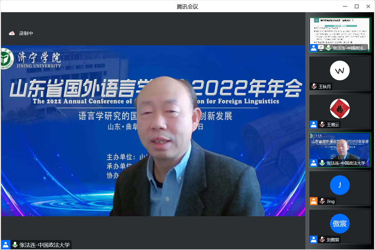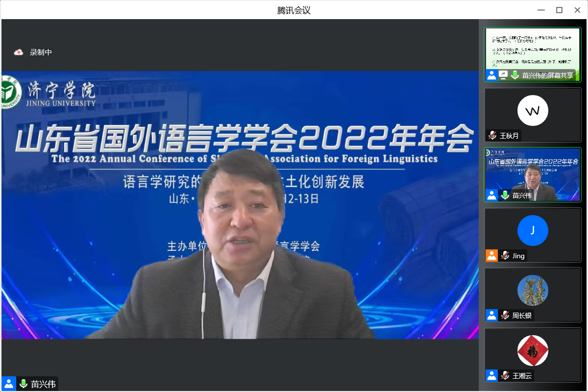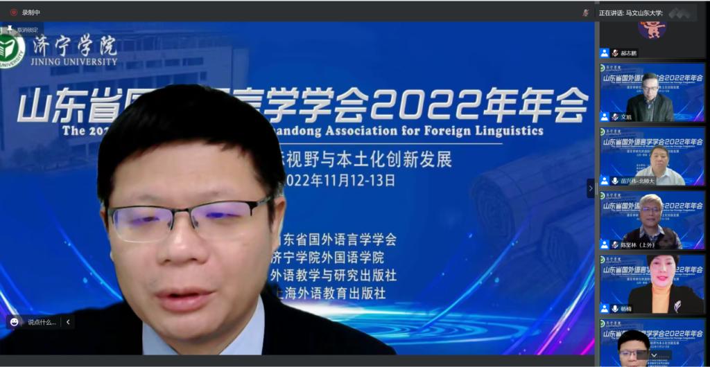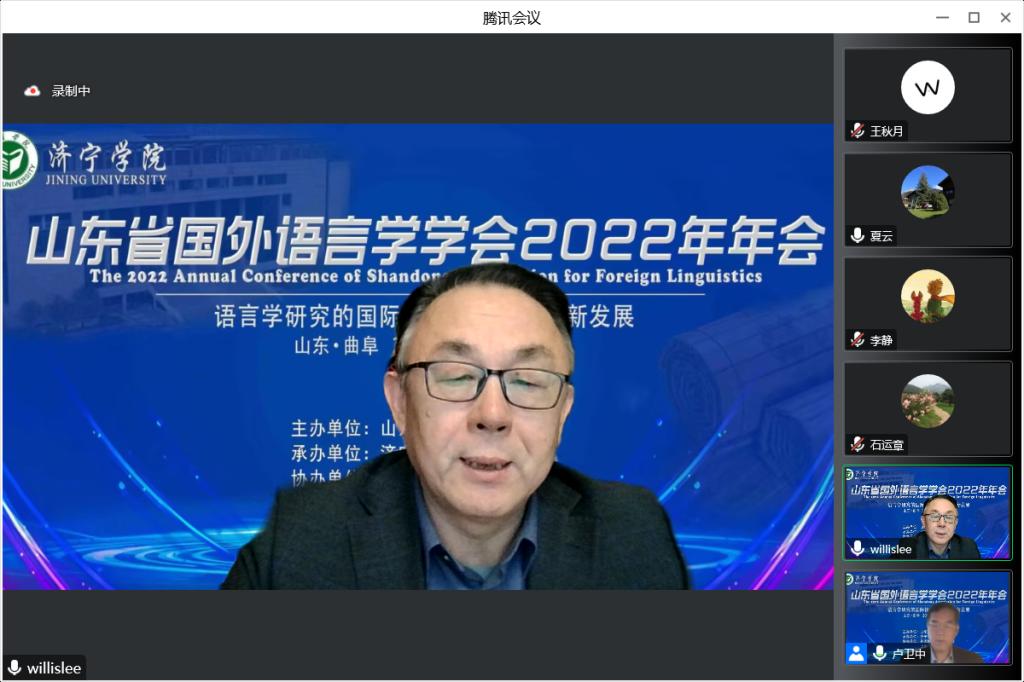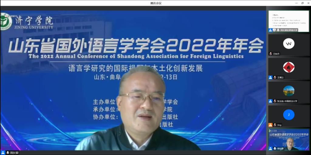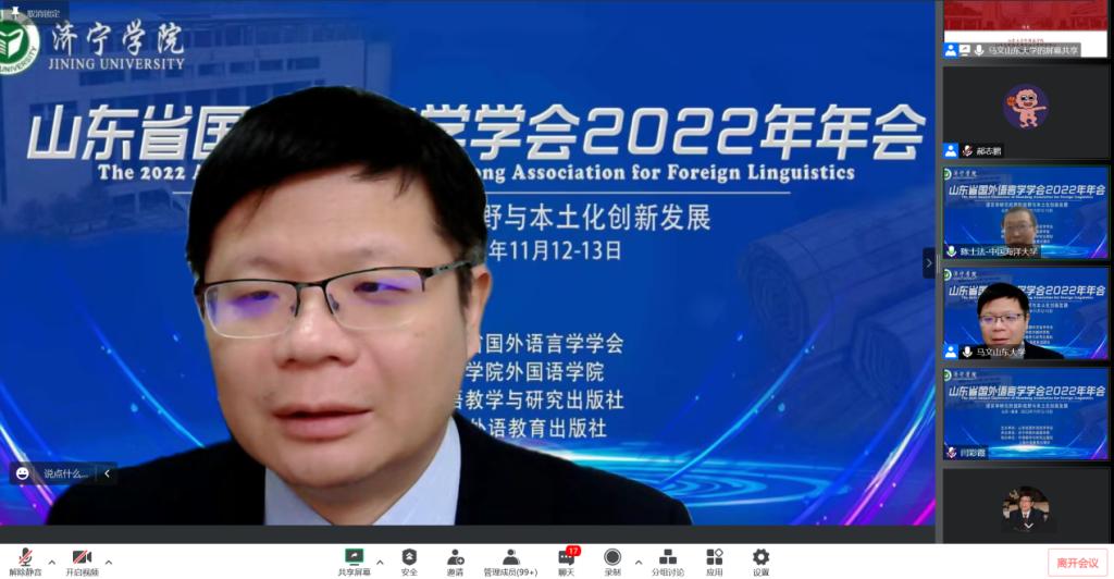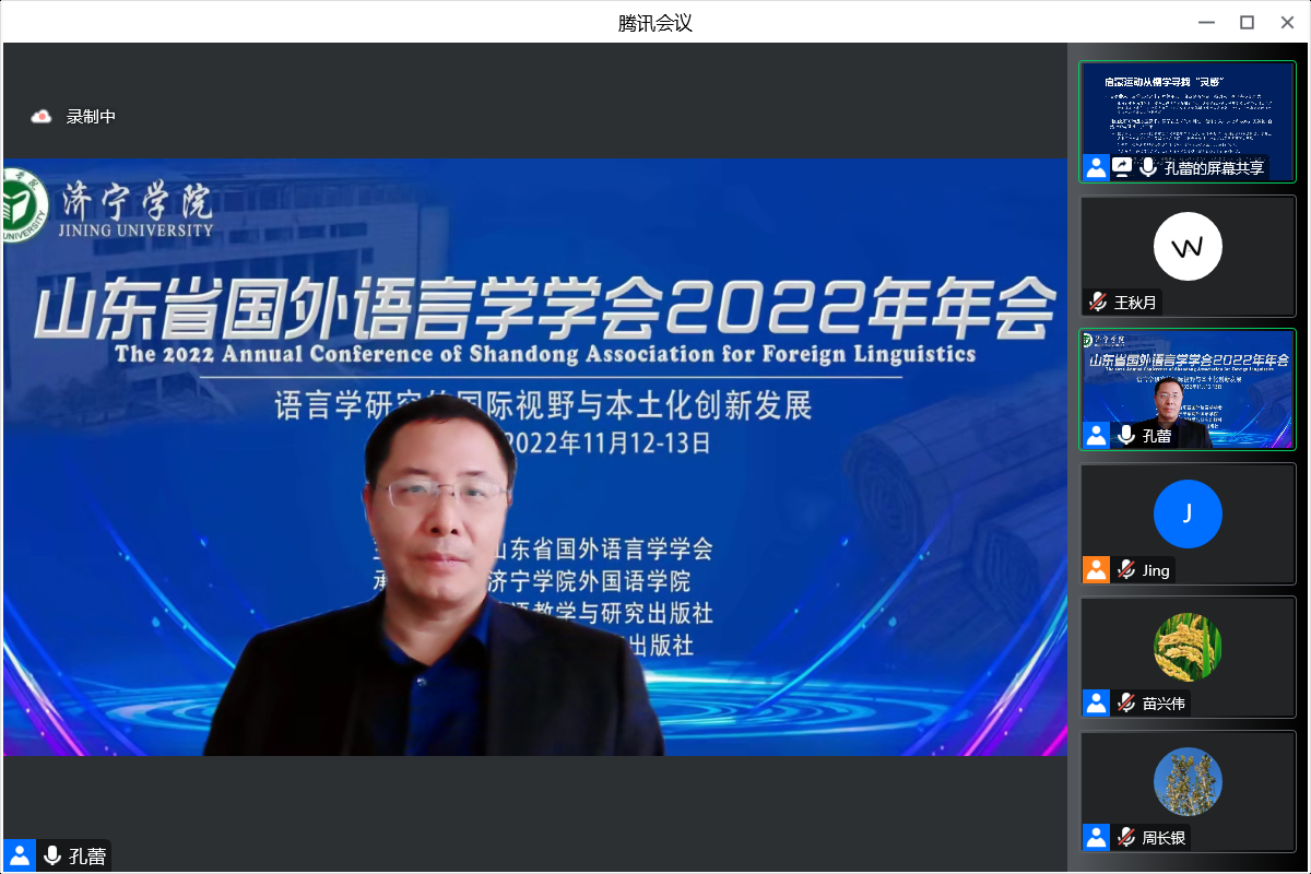 深秋意未尽,初冬寒尤暖。2022年11月12日-13日,由山东省国外语言学会主办、安博(中国)承办的“山东省国外语言学学会2022年年会”在线上隆重召开。会议聚焦语言学研究的国际视野和本土化创新发展主题,邀请了8位全国知名专家做主旨报告,23位省内各高校外院院长、专家、教授做主旨报告主持和6个分论坛点评嘉宾。大会受到广泛关注,腾讯会议出席人数达到扩容后的500人上限。来自国内外202所高校的500多名专家、学者、老师、同学围绕大会主题,通过微信群、腾讯会议直播间和分论坛小组展开了热烈的学术研讨和思想交流。大会收到学术论文投稿194篇,会议手册摘要收录172篇,分论坛发言115人。