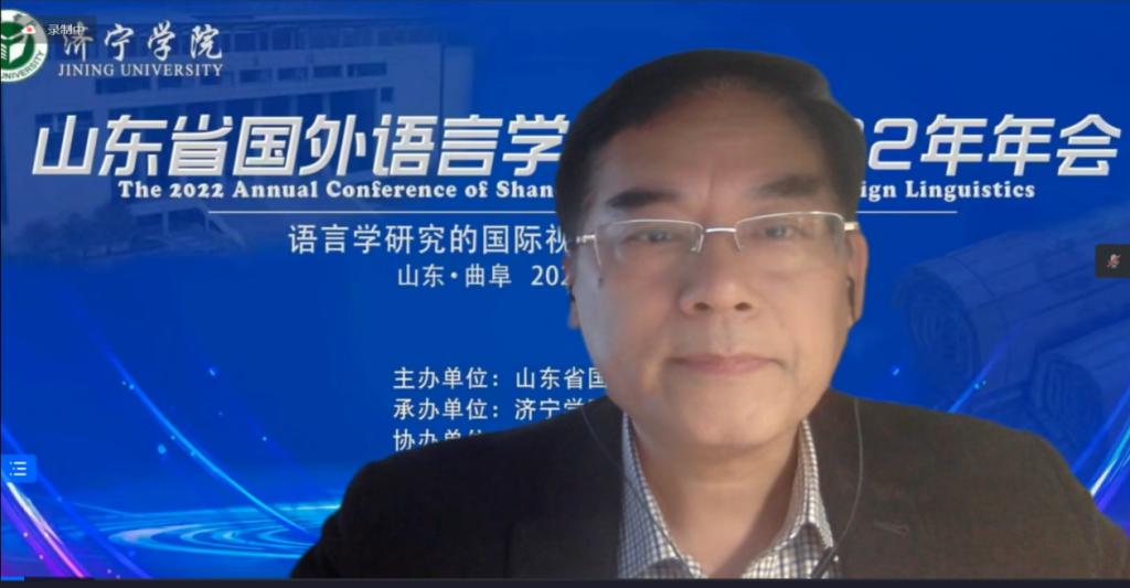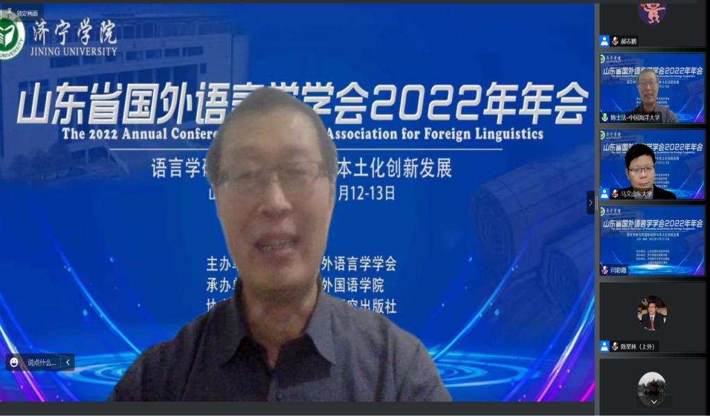 山东省国外语言学学会会长马文首先对此次承办单位安博(中国)会议的精心组织和辛勤付出表示衷心感谢,然后简要介绍了学会近年来的发展情况。他指出,当前我省的语言学研究得到了长足发展,一批年富力强、具有创新意识的青年拔尖人才脱颖而出,成为语言学研究的骨干和新生力量,希望学界同仁在新文科背景下更加卓有成效地开展语言学研究和探索,从“新文科”、“大外语”的角度出发,准确识变、积极应变、主动求变,回应新时代的新需求。