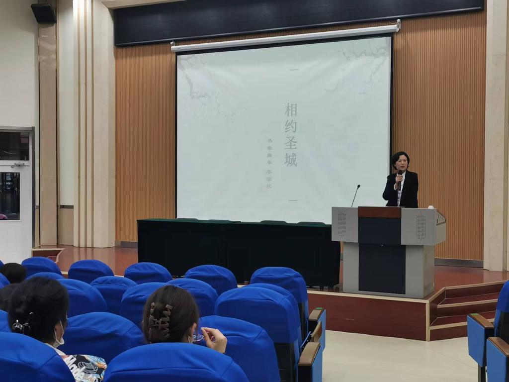为深入推进《孔孟之乡地域文化翻译》课程教学改革,加深学生对中华优秀传统文化的了解,4月17日晚,安博站官网登录入口邀请书香曲阜儒学体验基地首席儒学讲师李学欣做了题为《相约圣城》的传统文化讲座。安博站官网登录入口近500名师生参加,讲座由课程负责人颜冬梅老师主持。