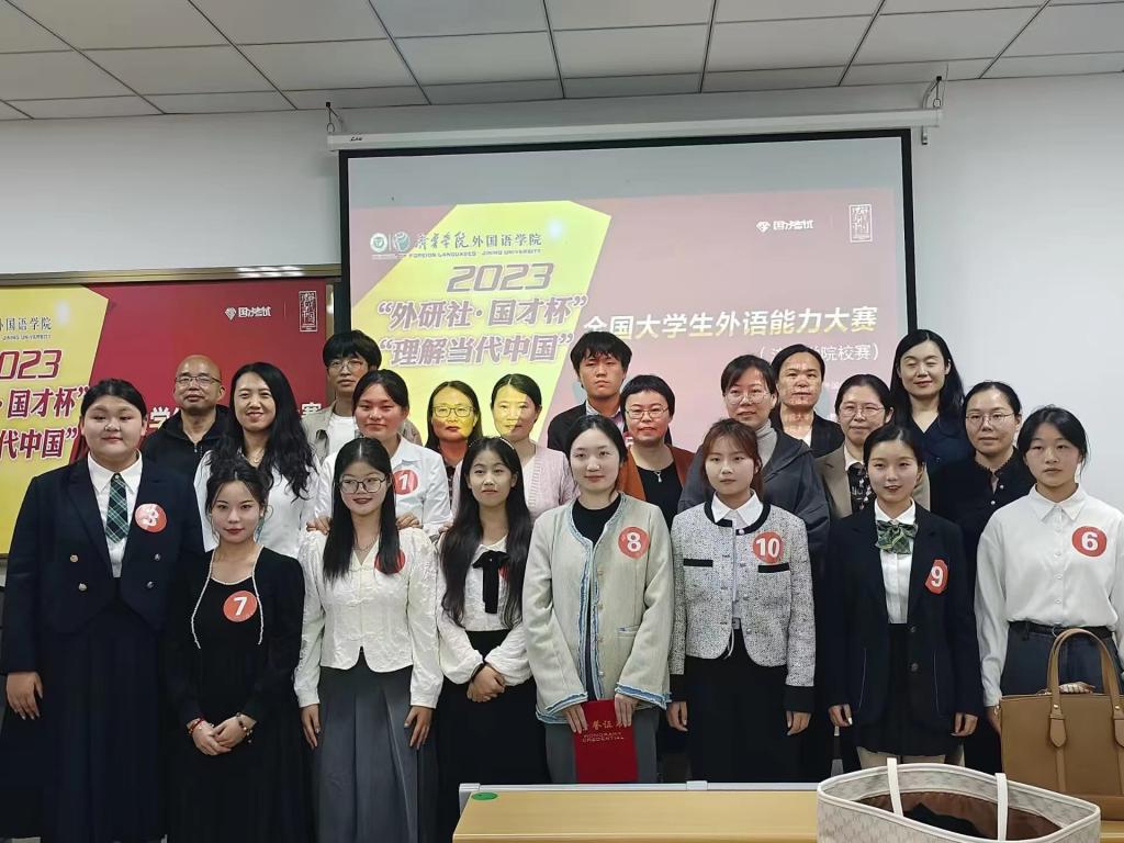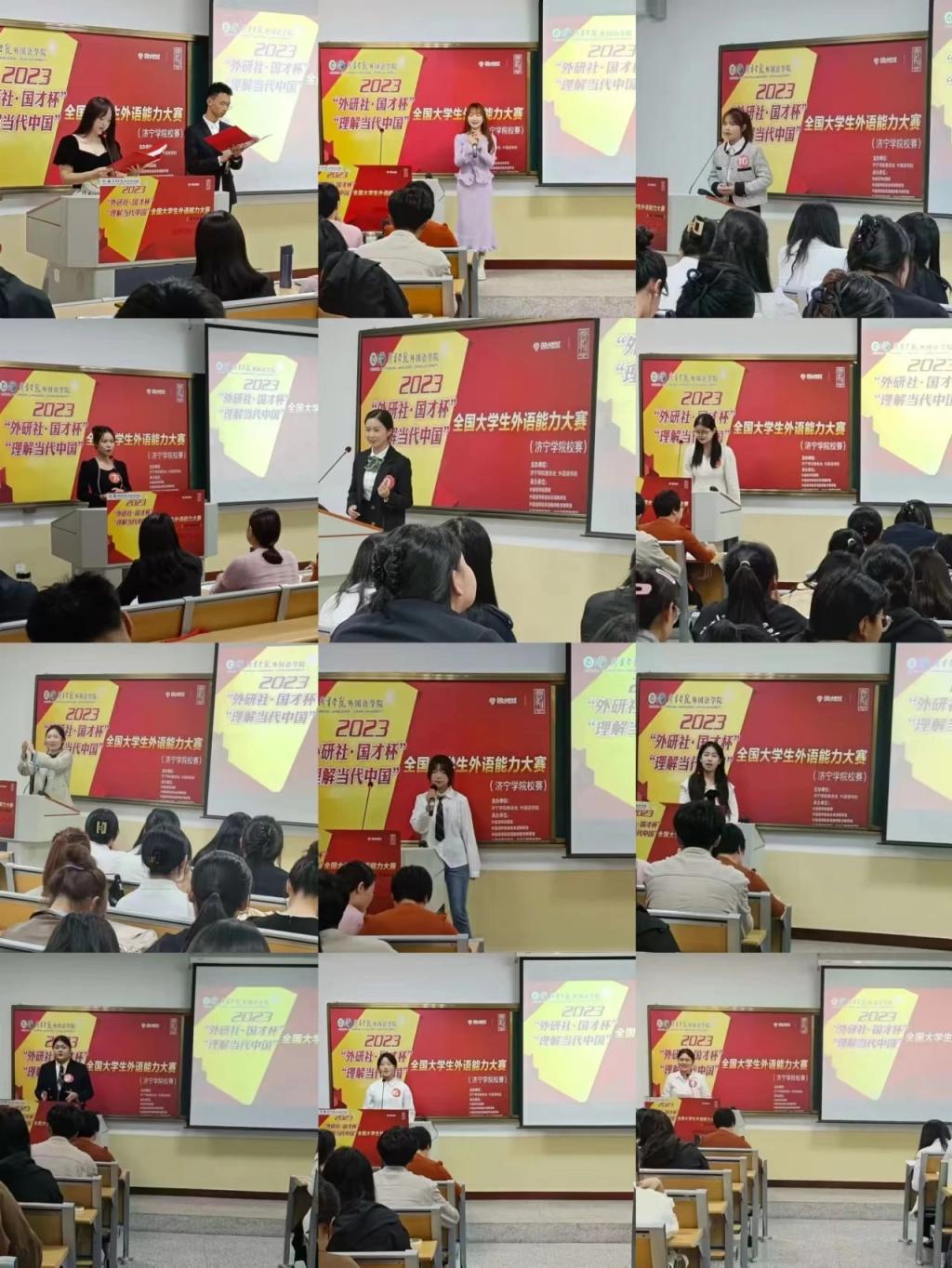 2023年10月12日晚,安博站官网登录入口在2A210教室举行了2023年“外研社·国才杯”校级演讲复赛选拔活动。安博站官网登录入口副院长张颖、党委副书记文灿出席了本次活动,教研室主任及专任教师担任比赛评委。