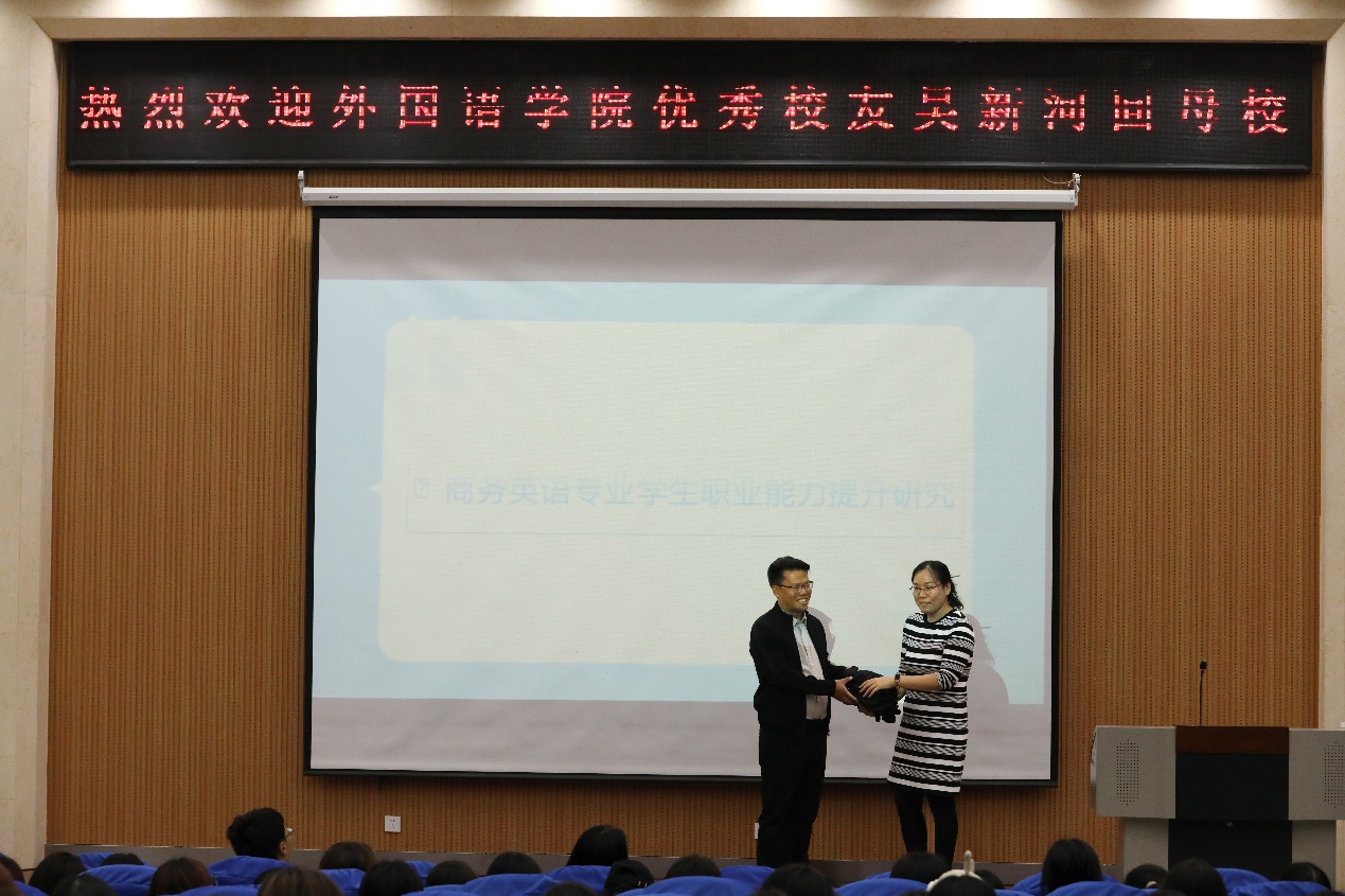 通过本次报告,吴新河校友用自己真实、丰富的经历让同学们站在创业人的角度认识到了商务英语专业的职业素养,感受到了商务英语的学科魅力,明确了自己学业规划的方向,对同学们的职业规划、人生之路都有所启迪。