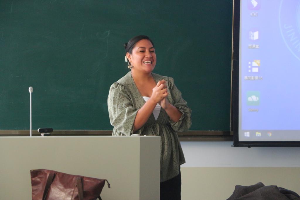 随后,Louise Marie Matatia Milo教授介绍了萨摩亚的三个核心价值观:谦虚、尊重和互惠,详细讲解了萨摩亚人传统的劳作方式——Tautau,使在场的师生对萨摩亚文化有了更深入的了解。在互动环节中,Louise Marie Matatia Milo教授向参与者展示了萨摩亚人的日常行为习惯和活动。Siolana Tolai女士带领全体学生学习了萨摩亚的娱乐方式和一首传统歌曲,使同学们在欢乐的氛围中深入体验了萨摩亚文化。