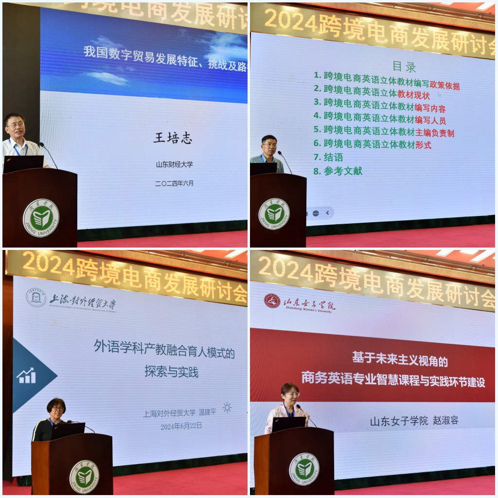 山东中日韩产业研究院王培志教授、齐鲁理工学院刘白玉教授、上海对外经贸大学温建平教授、山东女子学院赵淑容教授、菏泽学院孙洪波教授、出个海(广州)贸易有限公司(跨境好家伙)创始人林东泳、和洲豪科技有限公司法人李世豪等7位专家、企业家围绕跨境电商专业研究热点及发展趋势做了精彩的主旨报告,张颖就校企合作培养跨境电商人才分享了安博(中国)的探索路径。主旨报告分别由王晓霞教授、范莉教授、朱敏教授、常荷丽教授、孙洪波教授、王成经理主持。