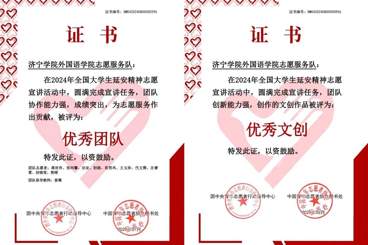 近日,团中央青年志愿者行动指导中心、中国青年志愿者协会公布了2024年全国大学生延安精神志愿宣讲团优秀团队名单, 我校安博站官网登录入口志愿服务队从全国1000支队伍中脱颖而出,被评为全国优秀团队,团队创作的文创产品被评为全国优秀文创。