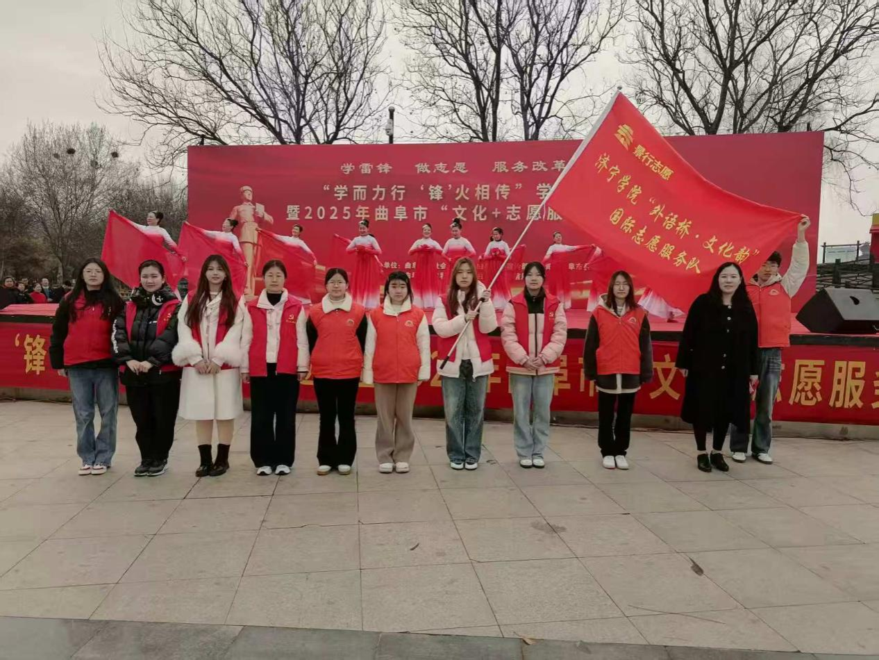 3月4日,“学而力行 ‘锋’火相传”学雷锋志愿服务主题月暨2025年曲阜市“文化+”志愿服务启动仪式在曲阜市沂河公园广场隆重举行。安博站官网登录入口团委副书记姜璨与安博站官网登录入口“外语桥·文化韵”志愿服务队作为受邀授旗队伍之一,在现场见证并参与了活动仪式。