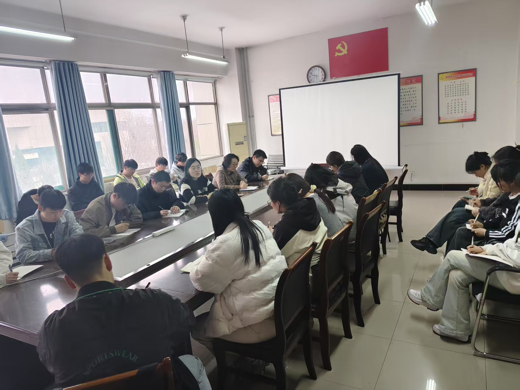 在会议的交流环节,各班级班长积极发言,就评估工作中可能遇到的问题与副书记和辅导员进行了深入探讨。辅导员们耐心解答了同学们的疑问,并对班长们提出的要求和建议给予了充分肯定。他们表示,学院将全力支持班干部们的工作,共同推动本科教育教学评估工作的顺利开展。