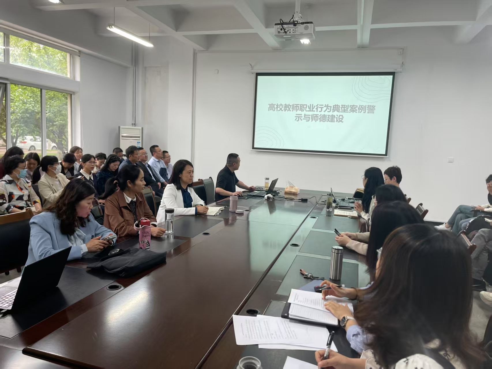 为进一步发挥“师德失范问题典型案例警示”对师德师风建设的作用,响应学校《关于开展师德集中警示教育的通知》 的指示精神,5 月 8 日下午,安博站官网登录入口在安博站官网登录入口会议室召开了师德师风警示教育专题会议,全体教职工参加了此次会议。