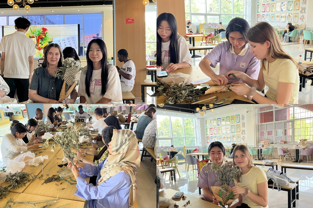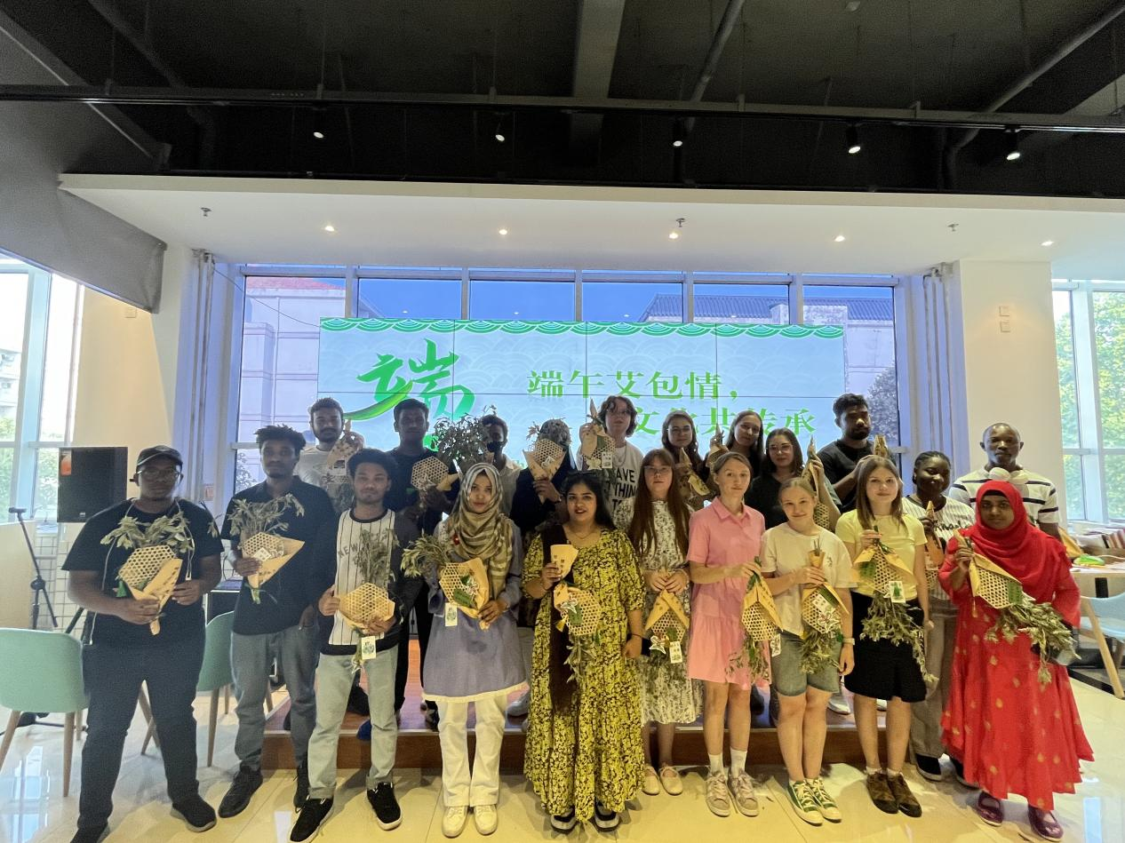活动现场,党员志愿者和项目志愿者发挥各自优势,通过生动细致的讲解,向留学生介绍了端午节的历史渊源、传统习俗及文化内涵,让留学生深刻感受到中国传统节日独特的文化魅力和情感厚度。在包艾包的体验环节,志愿者们积极协作,党员带头示范,项目志愿者热情协助,共同指导留学生完成每一道工序,活动现场温馨而热烈,充分展现了中华民族特有的亲和力与文化自信。