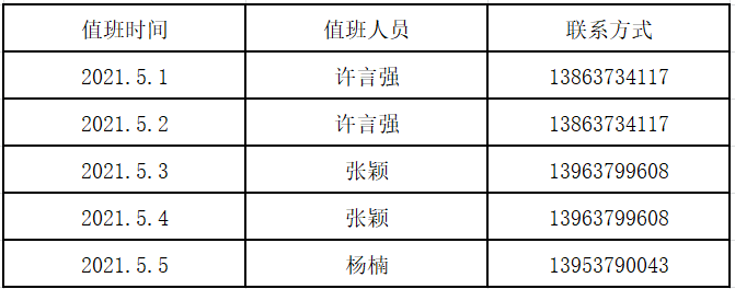 外国语系2021年五一假期值班