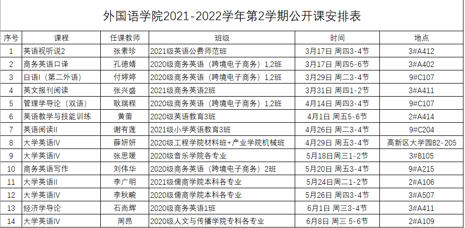 2021-2022学年第2学期安博站官网登录入口听课安排表