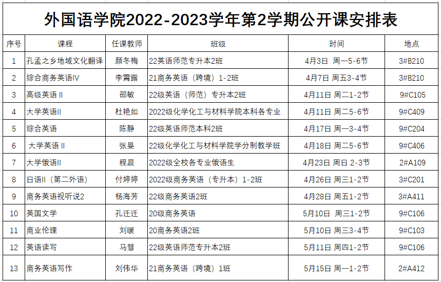 安博站官网登录入口2022-2023学年第2学期公开课安排表