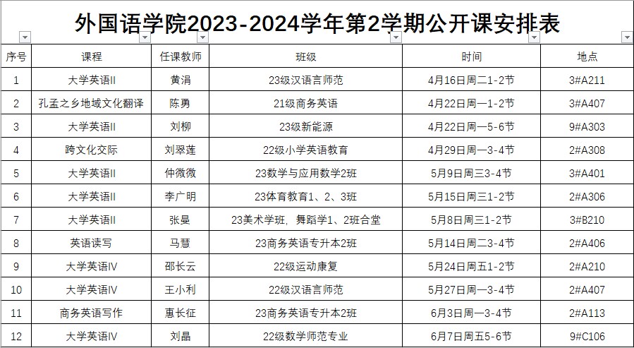 2023-2024学年第二学期安博站官网登录入口公开课安排表