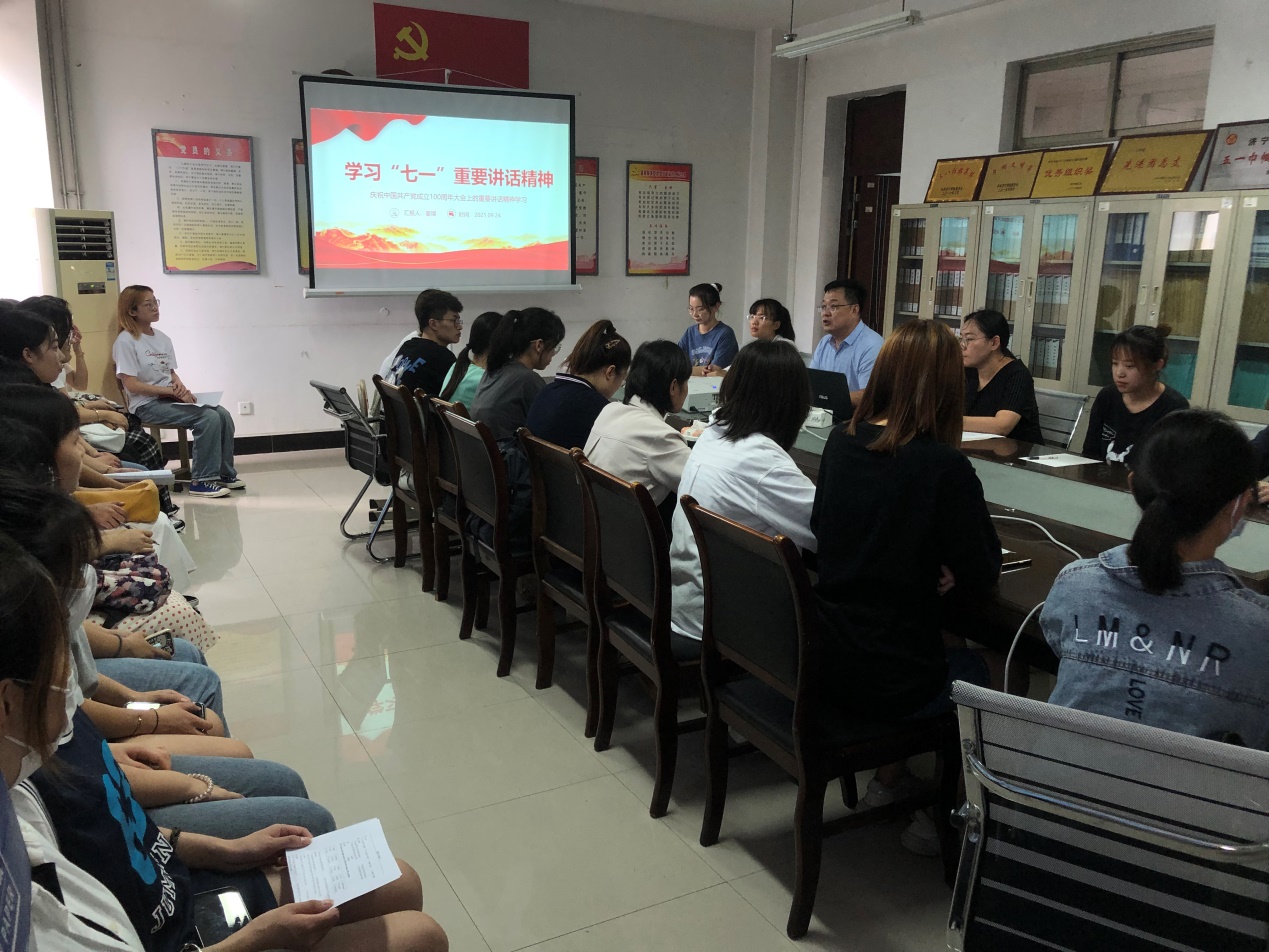 2021年9月24日,安博站官网登录入口学生党支部在A306学习习近平总书记“七一”讲话精神,支部全体党员参加,会议由学生党支部书记姜璨主持。