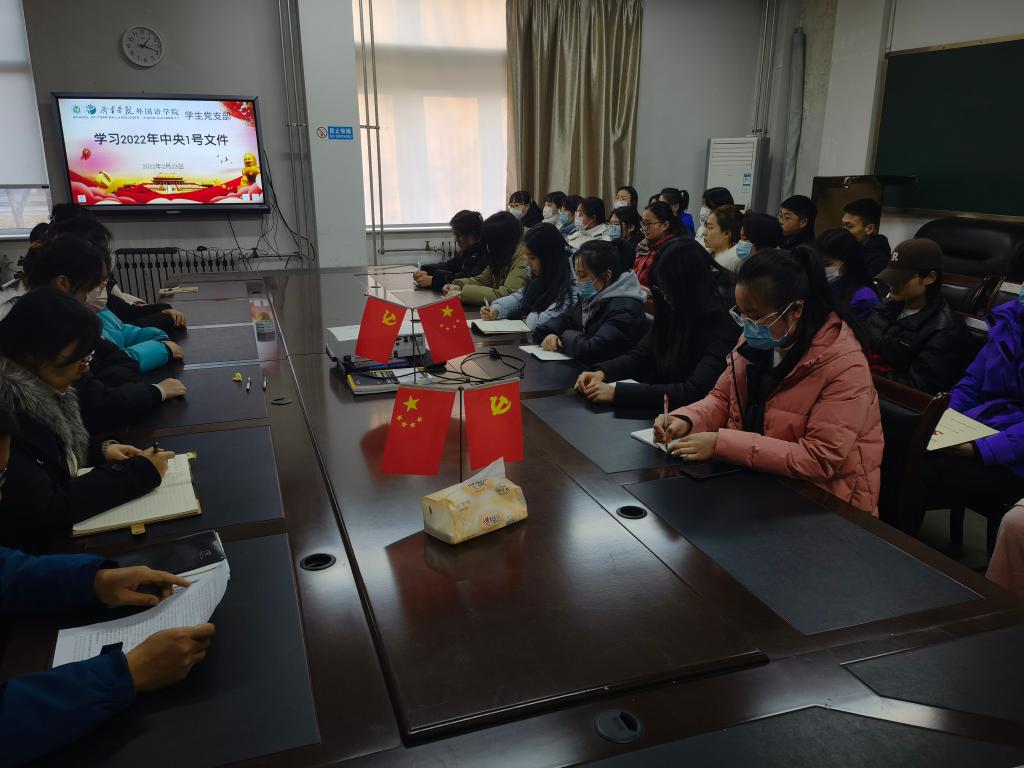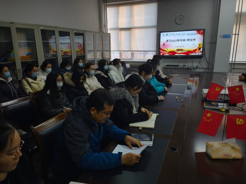 2月23日下午,安博站官网登录入口学生党支部在一楼会议室集中学习2022年中央一号文件,学生党支部书记姜璨主持,全体辅导员及学生党员参加。