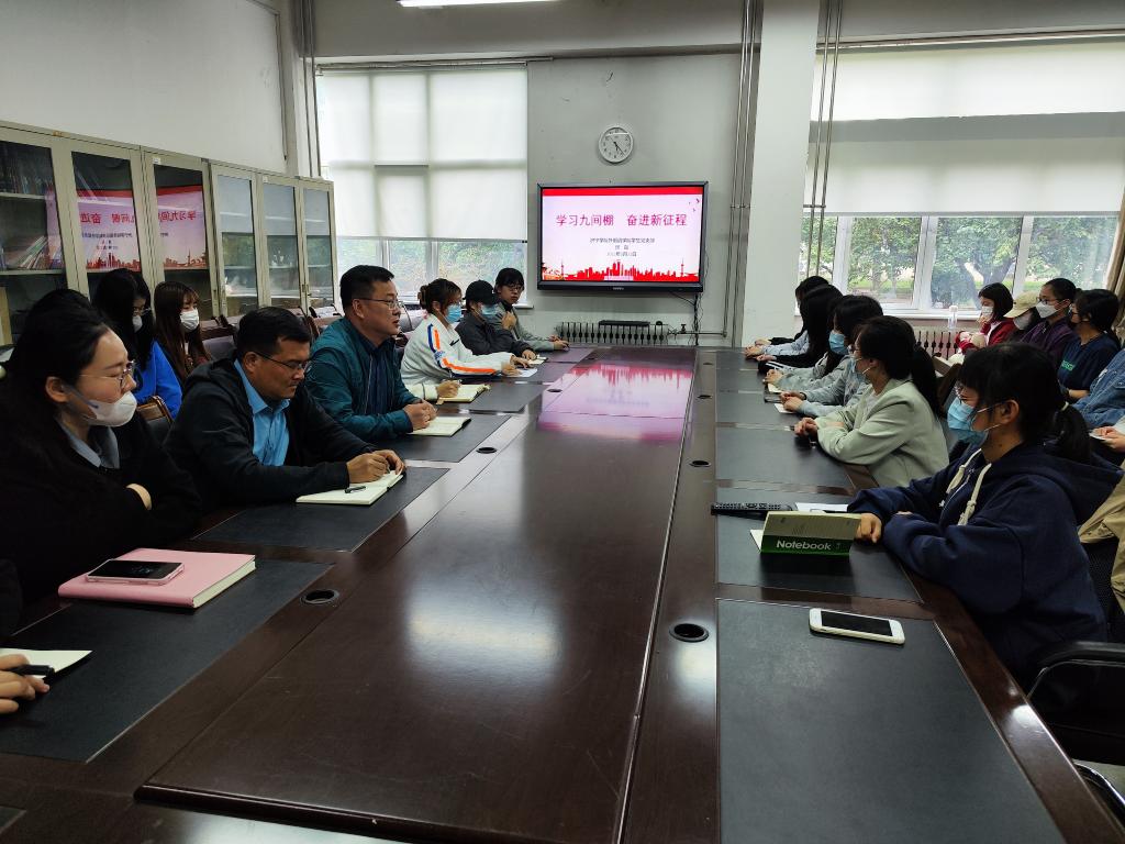 5月11日下午,安博站官网登录入口学生党支部在三号楼一楼会议室开展“学习九间棚 奋进新征程”主题党日活动,该院党委副书记许言强,辅导员及学生党支部党员参加。