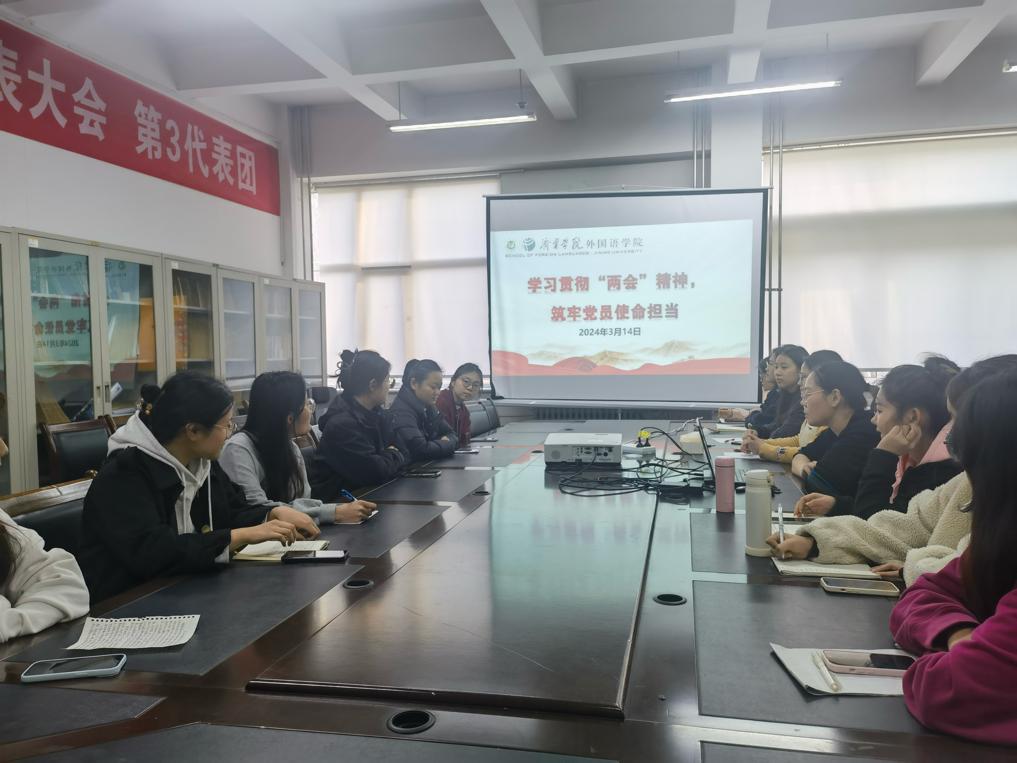 3月14日下午,安博站官网登录入口学生党支部在学院会议室举办了以“学习贯彻两会精神,筑牢党员使命担当”为主题的党日活动。活动由学生第一党支部书记姜璨主持,党支部全体党员参加。