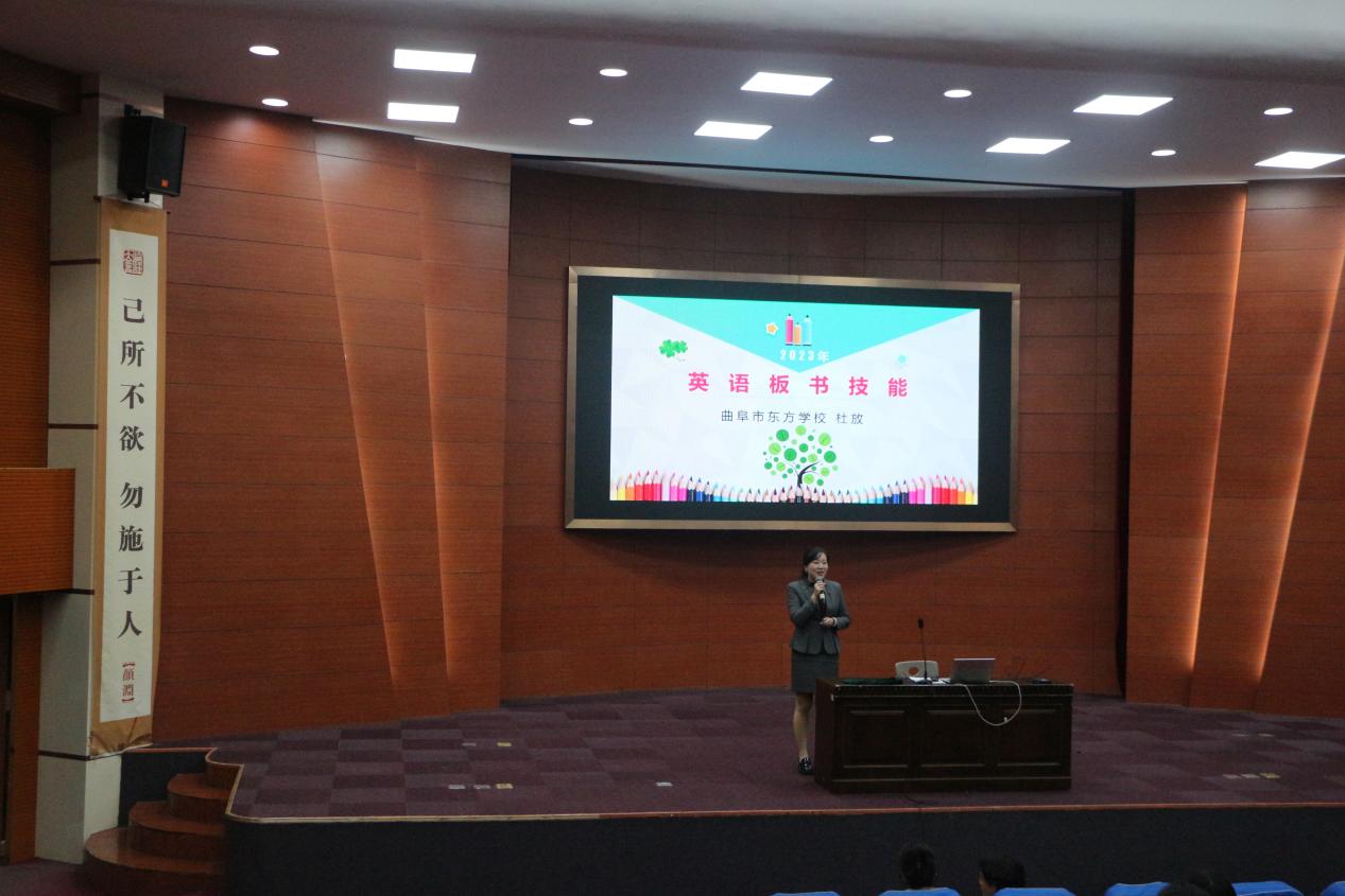 10月20日晚,安博站官网登录入口在理科楼报告厅开展“名师•名校长进校园” 暨师范生从业技能培养工作坊第十九期活动,本次活动由教务处和安博站官网登录入口联合主办,邀请曲阜市东方学校副校长杜放作了题为“英语板书技能”的报告。报告会由安博站官网登录入口院长助理刘暖主持,曲阜东方学校德育部主任杜冉冉老师,部分教师代表,2022级小学英语教育专业、2023级英语师范(专升本)等300余名学生参加了此次活动。