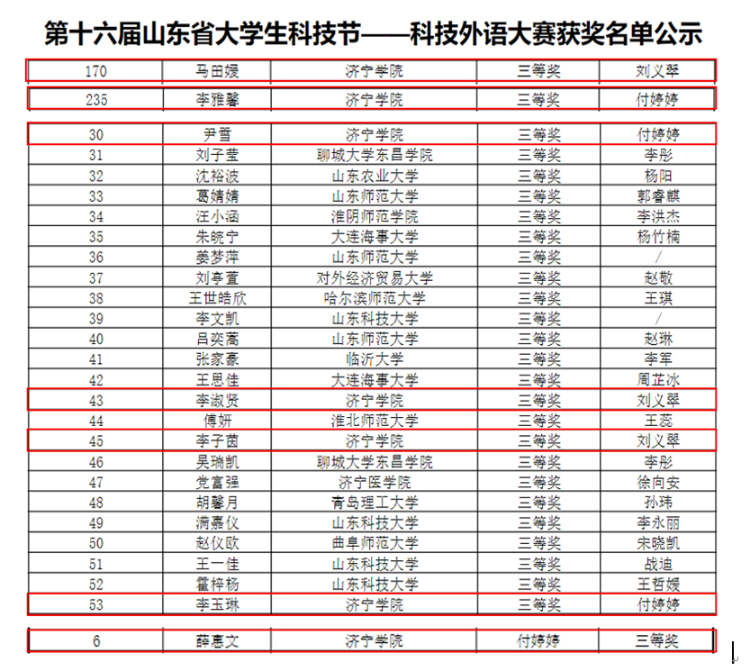 近日,第十六届山东省大学生科技节——科技外语大赛在日照落下帷幕,我校学生在日汉翻译和日语演讲比赛中表现出色,共有7名学生荣获省级三等奖。