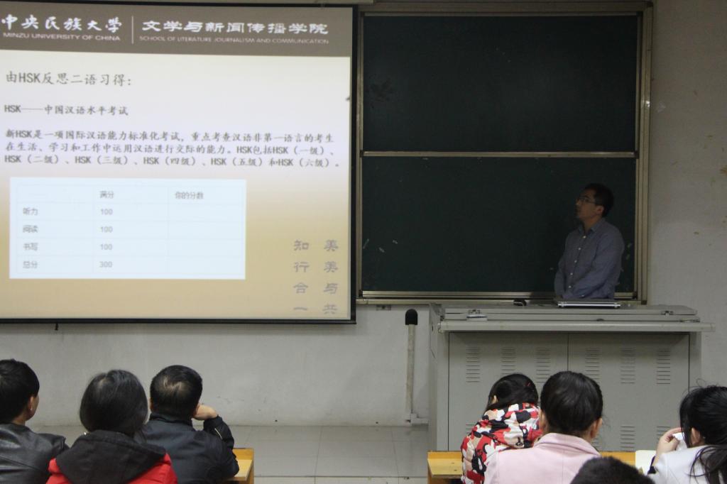 2016年11月7日18:40-20:40,我系邀请2012届优秀毕业生焦学振(现为中央民族大学文学与新闻传播学院博士生),在外国语系C201多媒体教室为全系师生做了题为“理想有远方,此生不能忘”的讲座。