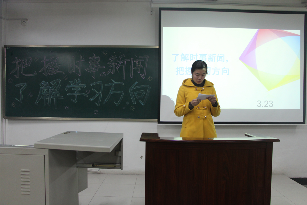 在本次活动中,同学们踊跃发言,以演讲的形式表达自己对时事新闻的见解。幻灯片的展示,使我们更全面的了解了近期的时事新闻,比如,萨德问题,维权利益等。活动中穿插着各种趣味小视频,其诙谐幽默的语言活跃了现场气氛,更好的突出了本次活动的主题。最后,由团支书总结活动意义,本次活动圆满成功。