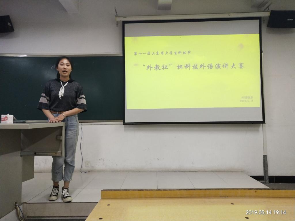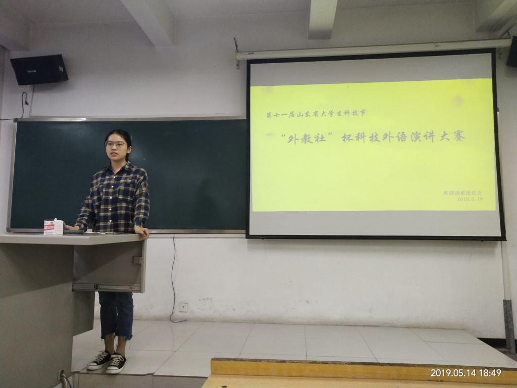 此次“外教社”杯科技外语大赛活动,为外语系学生提供了一个展现自我的平台,激发了广大同学学习英语的热情,提高同学对英语演讲的兴趣,营造一个良好的英语学习氛围。