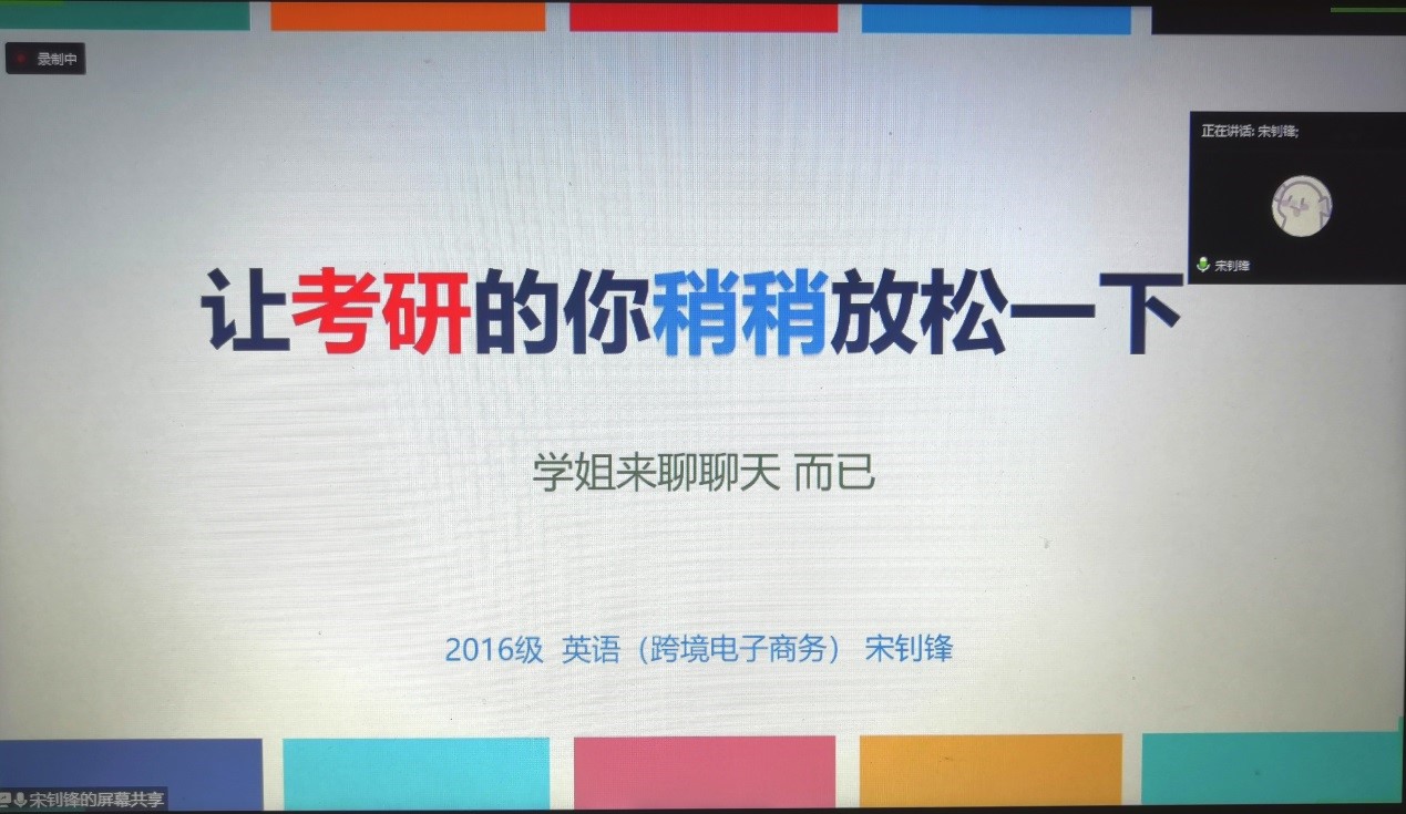 此次云享会有助于学生充分了解专升本、考研过程,明确备考过程中需要注意的问题,使备考更具有目的性。同时增加学生备考自信心,有利于营造外国语系良好学习氛围。