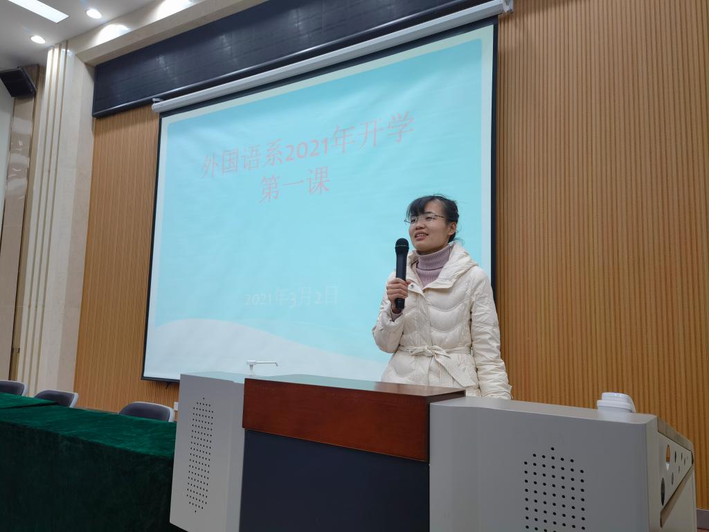 3月2日晚,外国语系2021年春季学期“开学第一课”在3号楼报告厅顺利进行。2018级、2019级及2020级学生分别参加学习,系党总支副书记许言强主持,各年级辅导员参加了活动。