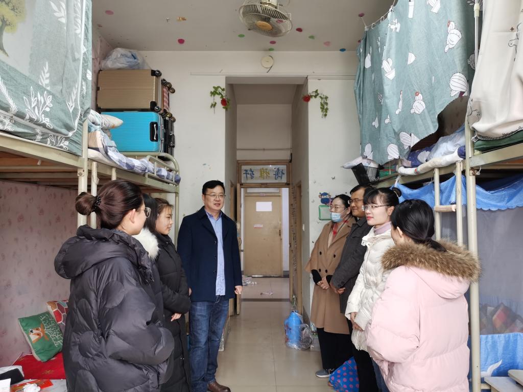 新学期伊始,2月28日上午,外国语系党总支副书记许言强及全体辅导员走进学生宿舍,了解学生情况,对宿舍安全卫生情况进行了检查。