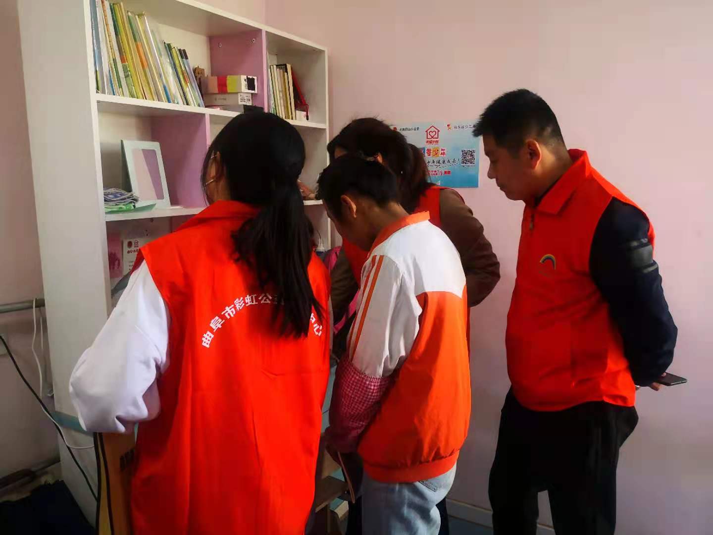 4月17日,曲阜市彩虹公益服务中心联合济宁学院外国语系团总支大学生志愿者,分成4队去尼山镇、防山镇、王庄镇、石门山镇、息陬镇,陵城镇等镇街走进希望小屋的孩子们进行回访。志愿者们对他们的地面卫生,个人卫生,书桌衣橱,学习成绩等方面进行打分,慰问她们的家长,询问她们的功课情况,并辅导她们写作业,还加了微信以便以后遇到不会的题目可以及时问,志愿者给孩子们赠送书籍,并在书的首页为他们写了励志名言,大学生志愿者和微爱妈妈指导希望小屋儿童整理小屋,对该换洗的被单被罩进行更换,最后与他们合照。家长们都表示十分感谢我们的到来及对她们孩子的殷勤关心,孩子们也很高兴看到我们的到来。