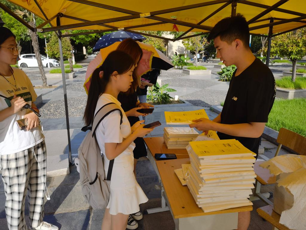 赠书活动书籍具体包括:《考研英语五百词》、《大学英语四级考试真题》、《大学英语六级考试真题》等。同学们利用课间浏览挑选心爱的资料,尽情享受“免费”的学习资源;在场的教师耐心解答各类疑问,针对同学们提出的英语学习窍门、考级考研等相关问题,结合自身经验予以细心指导。