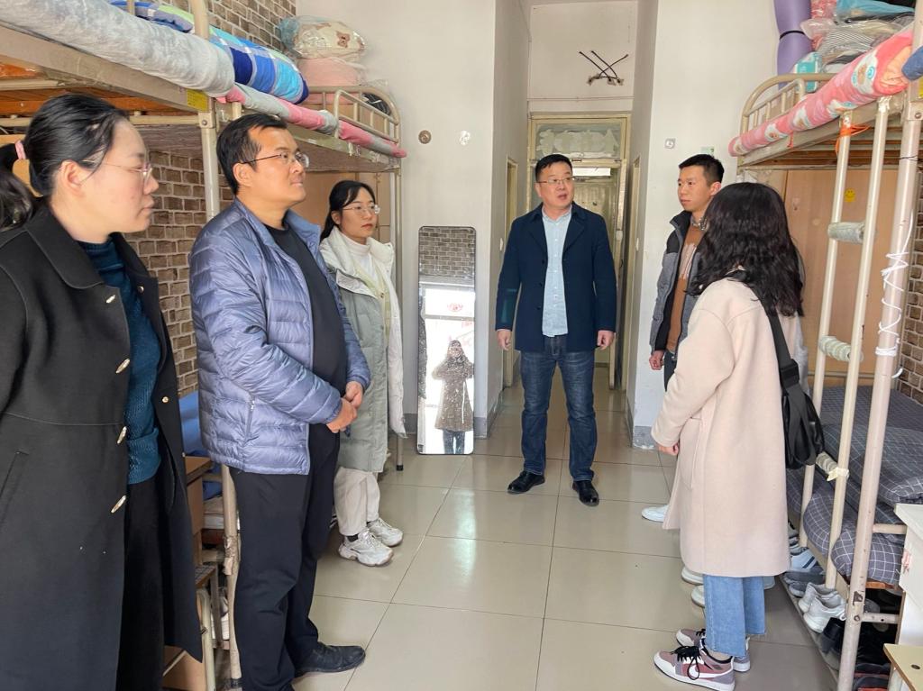 老师们与同学们亲切交流,了解同学们假期生活、学习情况和返校后的思想动态,随后仔细查看了学生宿舍的安全、卫生等方面存在的问题,详细询问了同学们的学习、生活等方面的情况和存在的问题,勉励同学们新的学期要把握青春时光,珍惜学习机会,积极广泛参加各种社会实践活动,全方位提升自己。最后,许言强强调:一要认真做好个人卫生,勤洗手,做好每日体温监测上报,减少聚集,做好疫情防控的日常管理工作。二要注意安全用电、提高防火防盗意识,严禁使用大功率电器、酒精炉等易燃易爆物品;三要自觉保持宿舍干净整洁,做到卫生安全不留死角、安全文明常抓不懈。