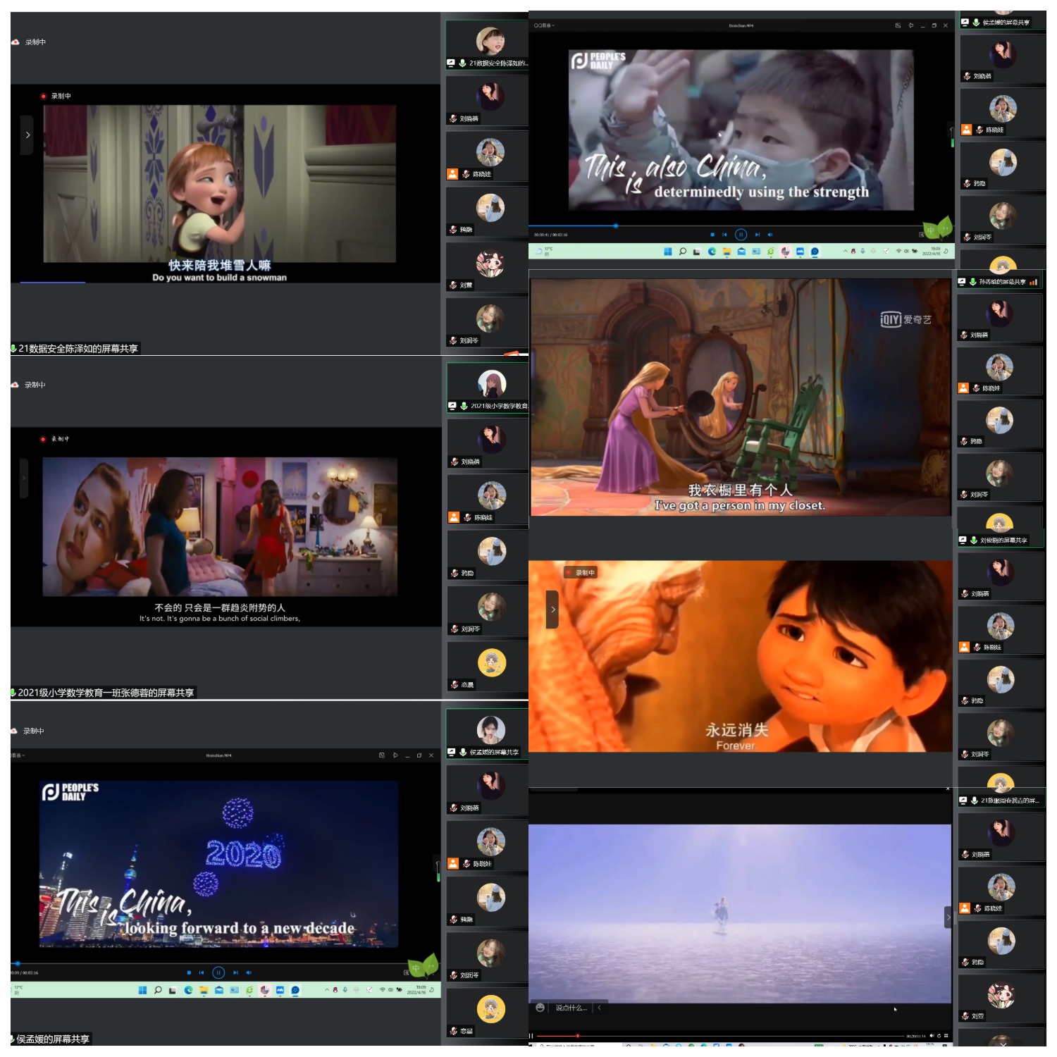 经过初赛的选拔,共有十三组队伍进入决赛。选手在腾讯会议平台进行展演,由评委现场打分。参赛队伍所选取的配音片段源于有英文经典电影,包括《冰雪奇缘——重逢》、《JOJO的奇妙冒险》、《木兰选秀》、《沉睡魔咒》等影片,他们通过声音重现,致敬经典;也有《This is China》经典演讲片段,在主旋律的光影魅力中感悟家国情怀。参赛选手们用流利生动的口语、富有感染力的语调,将自己的角色演绎的栩栩如生,出色的情感表达能力,心随音动,令人称道不已,堪比原生的模仿给老师和同学们带来了一场视听盛宴。