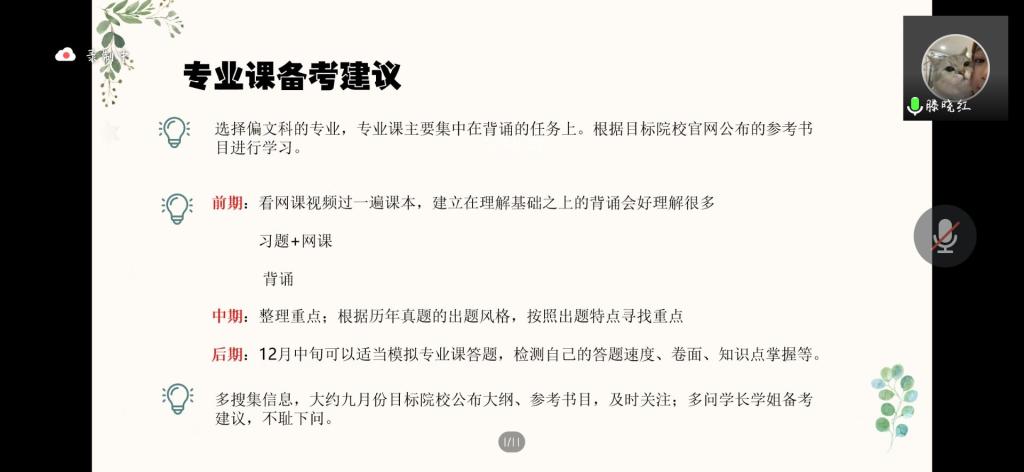 参加经验分享的学生是谭振姝、滕晓红、梁燕、乔骞,他们分别被北京第二安博站官网登录入口、曲阜师范大学、宁夏大学录取。谭振姝结合自身择校经历及备考过程,建议同学们在选择报考学校时应谨慎对待,根据个人兴趣选择报考专业,多了解当前社会热点和学界热点,不断拓宽知识面;建议备考过程中多研究真题,分析学校考试的侧重点。滕晓红通过讲述自己的考研经历、复习方法,鼓励同学们在备考中要坚定信心、坚守信念,勇敢的追逐梦想;考研是一场信息战,同学们要积极关注目标院校的微信公众平台,及时更新有关信息,并向大家推荐了一些可供学习的公众号平台和网课资料;乔骞从备考资料、备考进程、学习建议三方面分享了自己跨专业考研的心得体会,表示跨专业考研的同学要调整好心态,保持好状态;梁燕分享了自身在备考过程中不同学习阶段的详细规划,保持好良好心态,为自己营造浓厚的学习氛围,随后也分享了很多实用的小程序和软件。