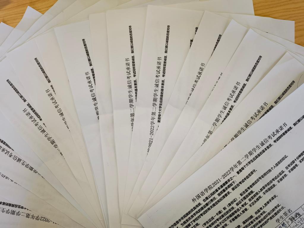 姜璨带领大家认真学习《济宁学院学生手册》中学生纪律处分办法,并强调,考试不仅是对学习情况的评价,更是对诚信品质的检验。同学们应该树立诚信意识,形成良好的学风和考试纪律,认清考试舞弊行为的危害性和不可弥补的严重后果,情节严重可导致取消学位证、毕业证甚至开除学籍。随后,全体学生签署《诚信考试承诺书》。同学们纷纷表示,牢记“拒绝作弊,诚信考试”的倡议,严格遵守考试管理规定,拒绝作弊行为,真实展现自己的学习成果。