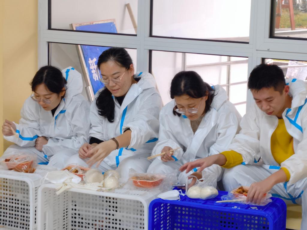 他们不是月光,却照亮了济园漆黑的夜空。那一夜,学生们还在睡梦中,全体在校老师便开始奔走在防控一线,他们都化作了“大白”,在落花微雨中,他们来不及擦干模糊了视线的雨水,争分夺秒的布置防线。楼有多高呢?他们来不及喘歇一口气,便赶往下一个宿舍楼送物资。夜有多深呢?他们为何发着光,这光微而不弱,足以充塞万物,烛照人间。他们是普普通通的平凡人,也是不计回报的守护者。