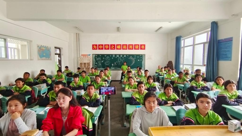 新疆英吉沙县的孩子们展现出对知识的渴望和对红色历史的浓厚兴趣。他们在活动中积极提问和踊跃发言,与宣讲团成员展开了热烈的互动,仿佛跨越了时间和空间的界限,共同体验了那段艰难而波澜壮阔的红色岁月。