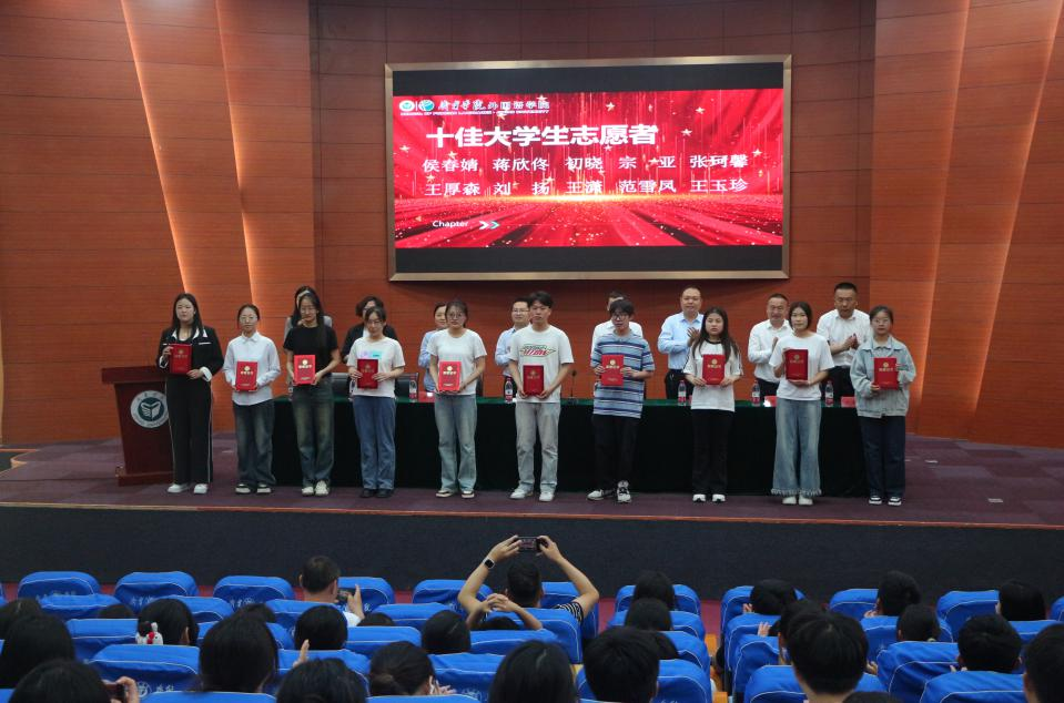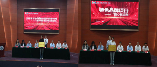 颁奖环节是对安博站官网登录入口志愿服务队辛勤工作的最佳肯定,庆典大会表彰了十佳大学生志愿者,并为志愿服务队颁发“优秀青年志愿服务团队”荣誉称号,为“爱心英语角”授予最佳特色品牌项目荣誉称号。