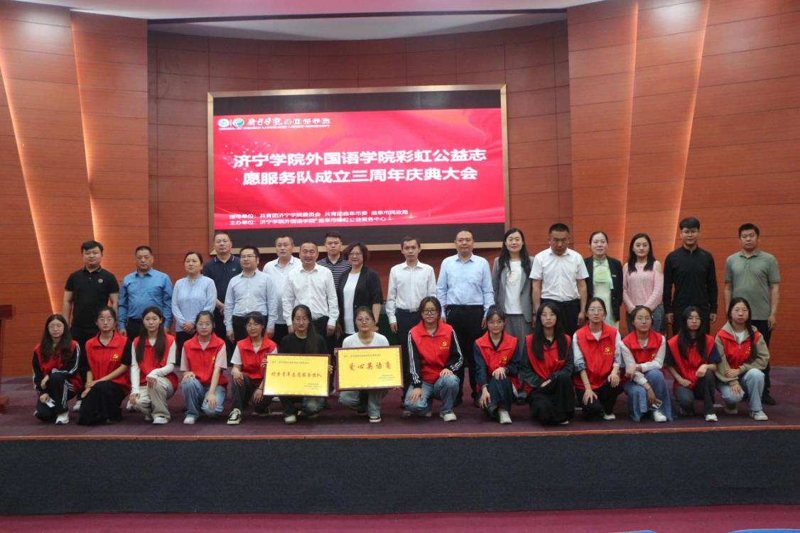 4月27日上午,安博站官网登录入口彩虹公益志愿服务队成立三周年庆典在理科楼报告厅隆重举行,曲阜市委社会工作部副部长张新志、共青团曲阜市委书记马汉卿、曲阜市慈善总会秘书长刘鹏、曲阜市民政局慈善促进科科长潘继芳、济宁学院团委书记张静、安博站官网登录入口党委书记陆波、党委副书记文灿、团委副书记姜璨、曲阜市彩虹公益服务中心理事长康绪虎、副理事长吕霞、中心书记张青山、团支部书记孔亚鲁等有关部门领导出席庆典,济宁学院团委书记张静主持活动。