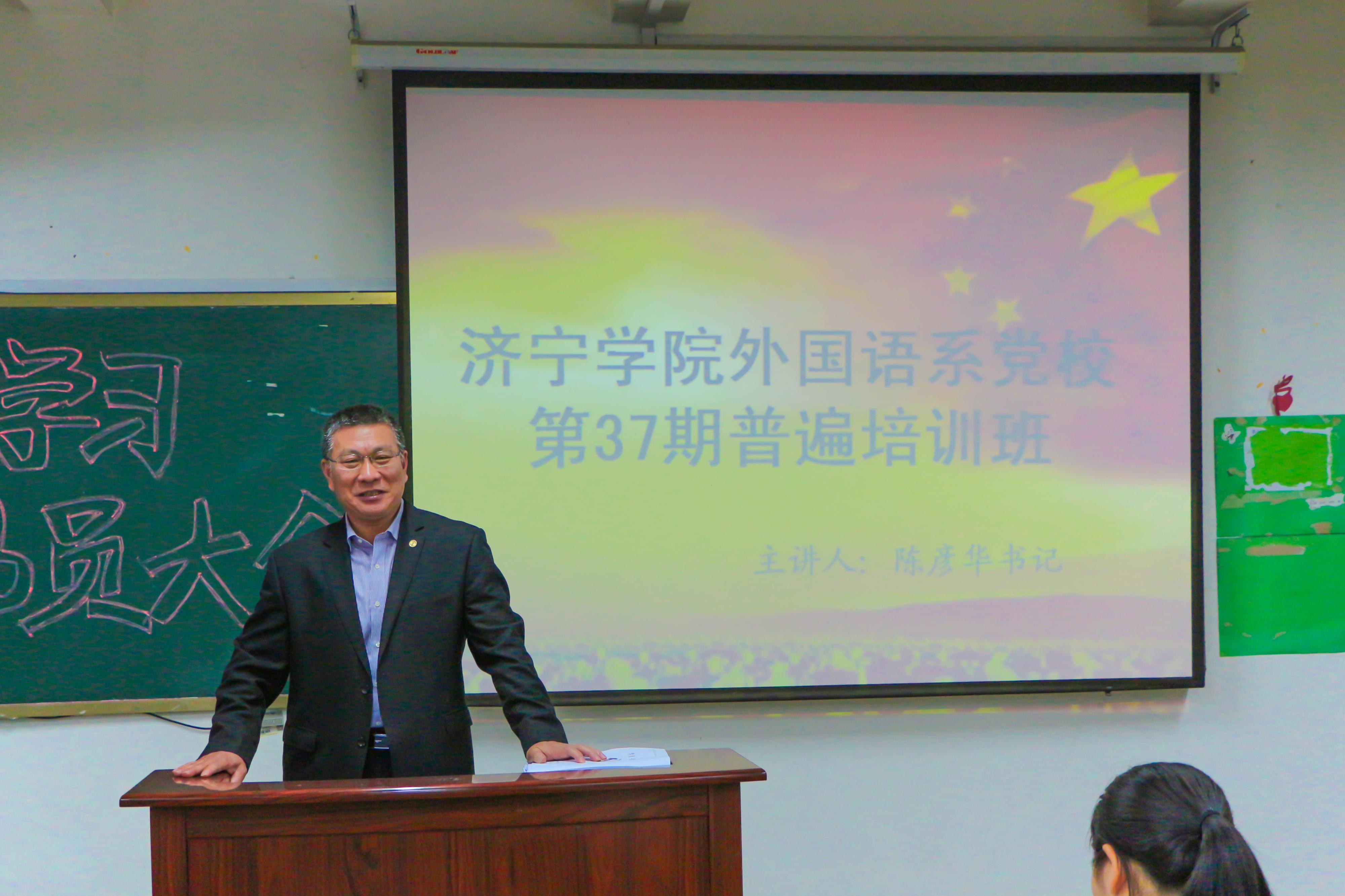 2018年4月16日,外国语系第三十七期入党积极分子培训开班仪式在外语楼A211顺利举行。外国语系党总支书记陈彦华、学生党支部支委会成员以及部分学生党员代表出席了开班仪式。2016级、2017级共71名入党积极分子参加了培训班。