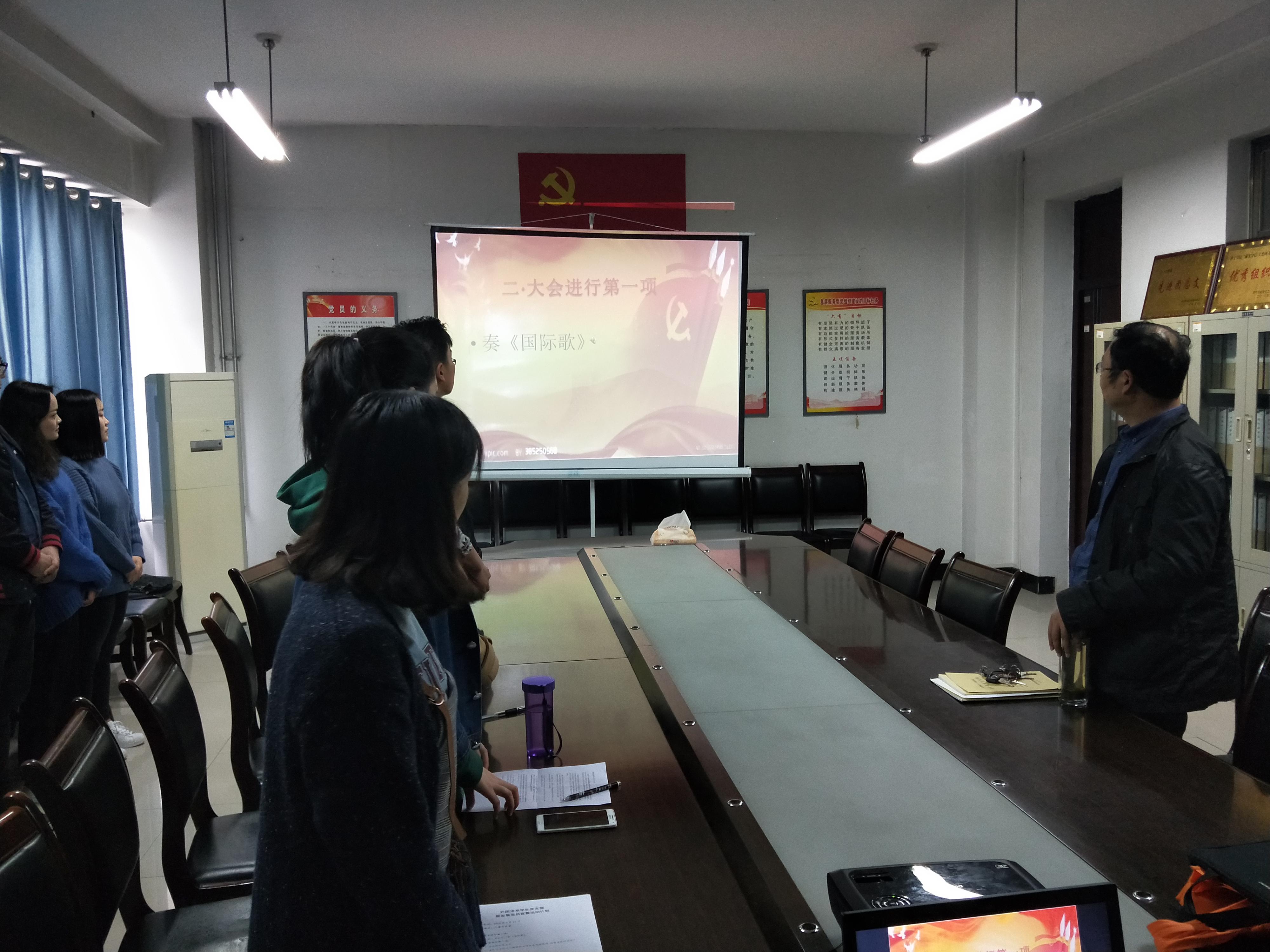 4月13日下午2:30,外国语系学生党支部组织2017年底新发展的预备党员进行了庄严的入党宣誓活动。系党总支副书记徐俊凯、学生党支部支委会成员、部分正式党员以及15位预备党员参加了活动。宣誓仪式由徐俊凯老师主持。