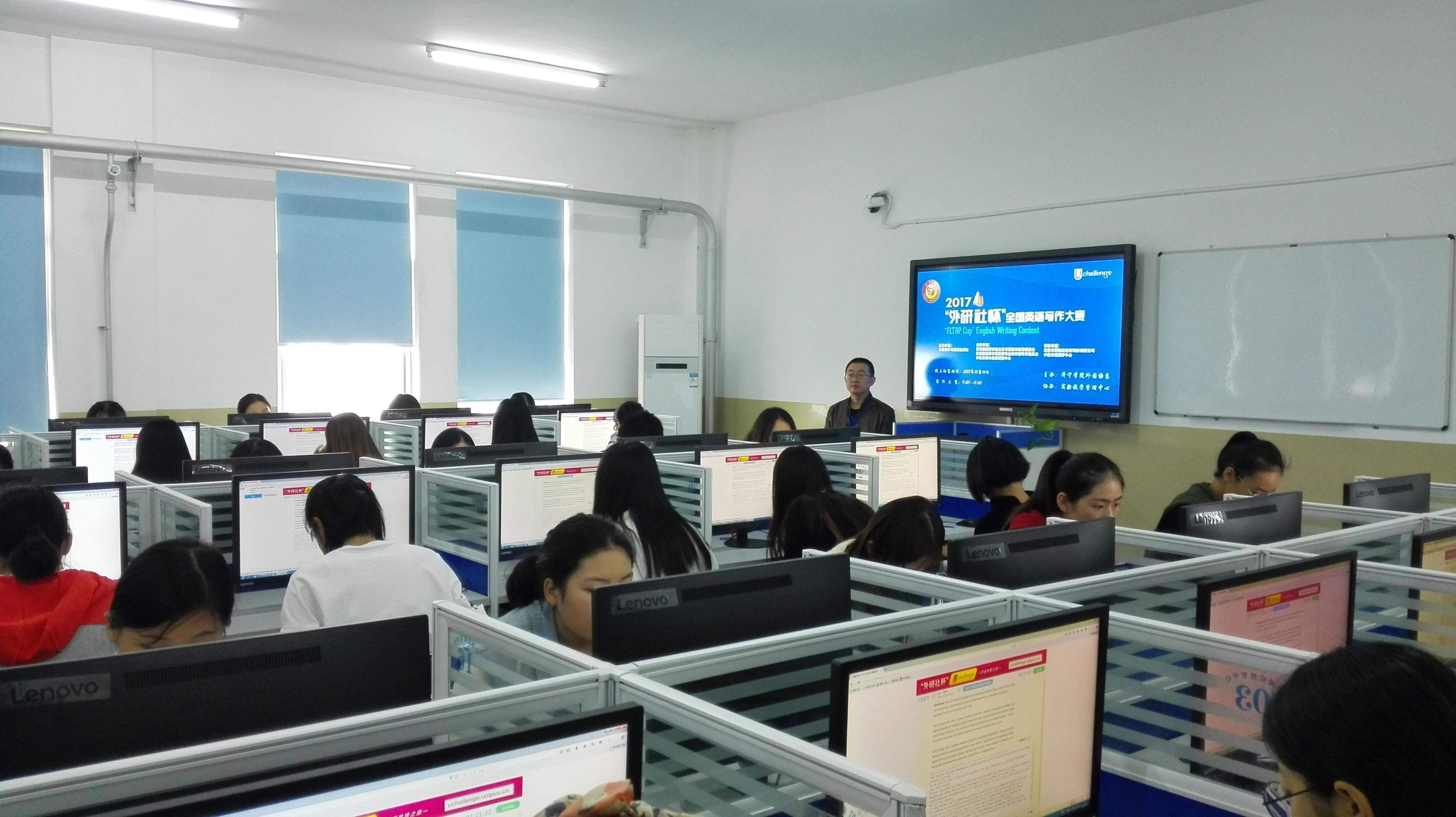 本次比赛得到学校领导、教务处和实验教学管理中心的大力支持,我系领导高度重视,成立了初赛组委会,进行广泛宣传,实验教学管理中心的老师协助调试电脑、安装比赛系统和软件。10月14日上午9:00—11:00、下午2:00—4:00参赛学生采用互联网考试模式顺利参加了外研社Unipus线上写作/阅读初赛。赛后,系组委会将根据选手成绩选拔特等奖选手参加山东赛区复赛。
