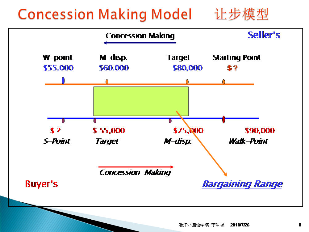 李生禄教授的课堂,印象最深的是他用一张图片向我们展示的“让步模型”(见下图),这个模型为我们谈判的每一步都提供指导,让我们了解了谈判双方的心理状态和预期,这个模型直观具体,是我们在课堂上应该多多借鉴的。
